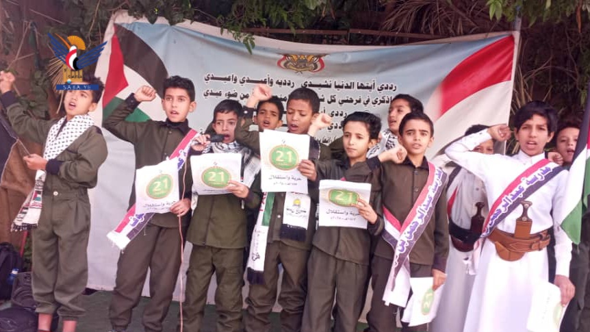 نظمّت عدد من المدارس الحكومية والأهلية في أمانة العاصمة، اليوم، فعاليات خطابية احتفاءً بالعيد الـ11 لثورة 21 سبتمبر المجيدة تحت شعار "حرية واستقلال".