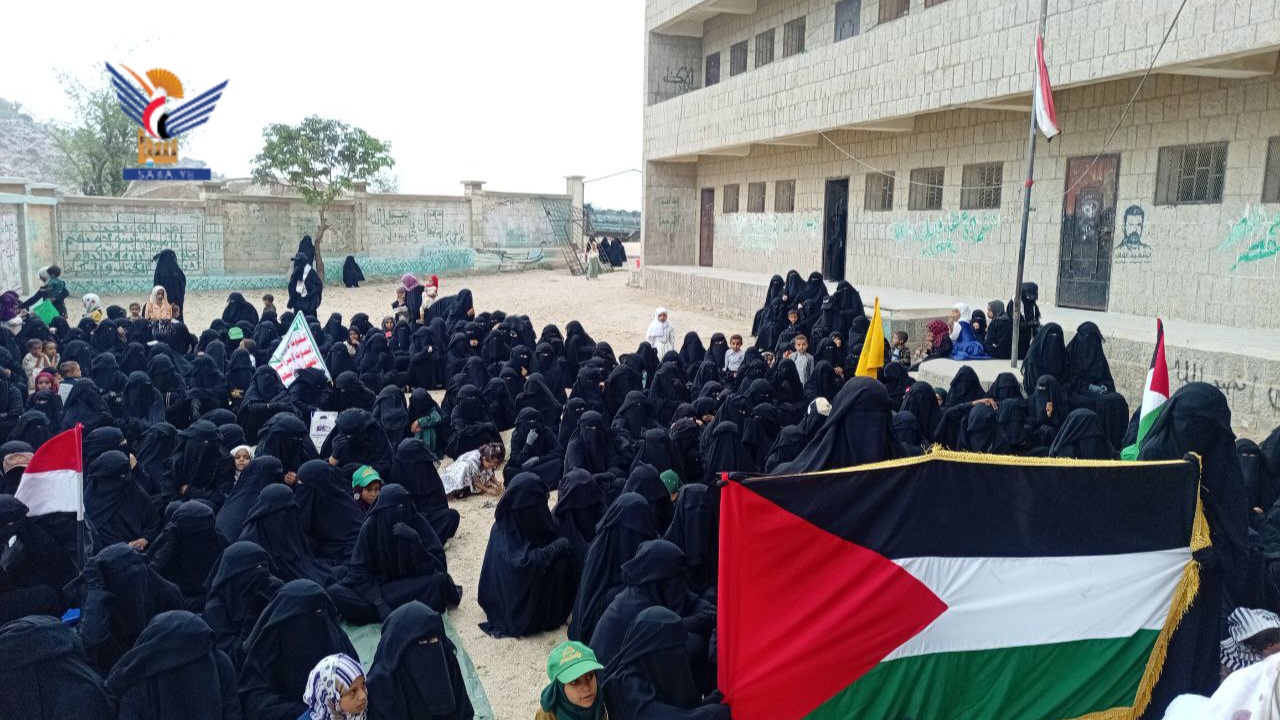 نظمّت الهيئة النسائية بمحافظة حجة، وقفات بالعيد الـ 11 لثورة 21 سبتمبر وتضامناً مع غزة.