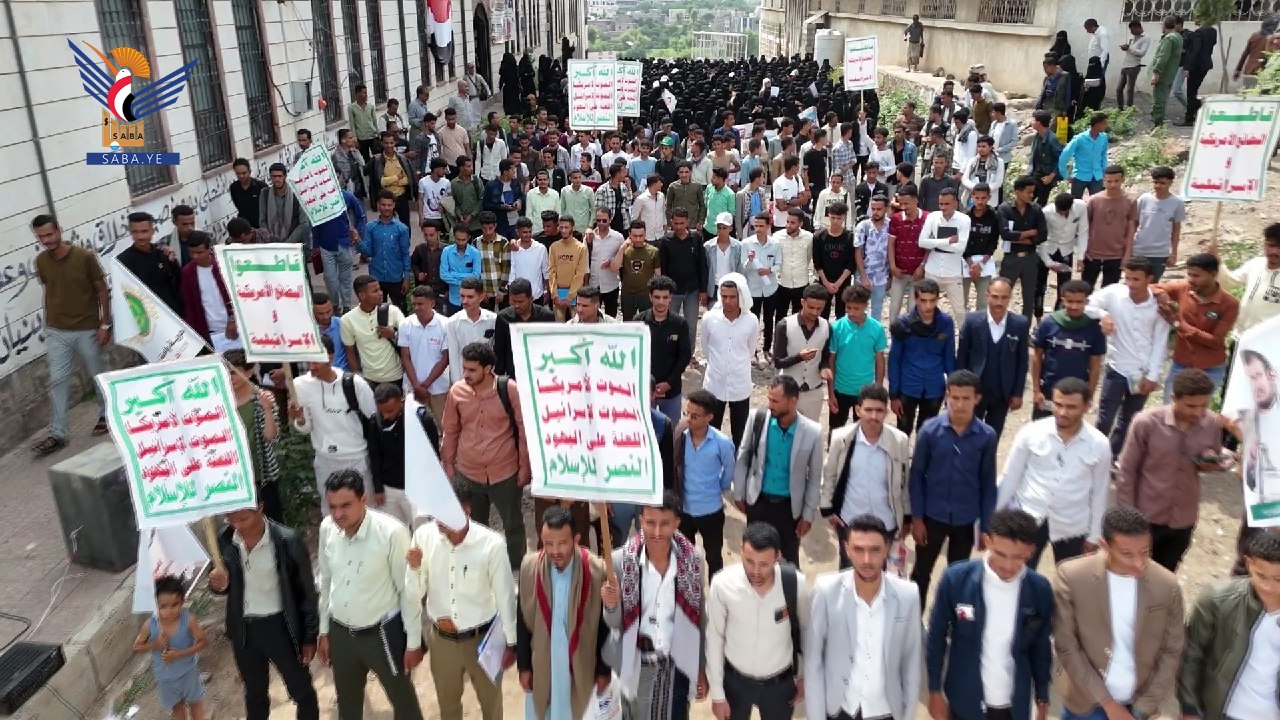 وعبرت الحشود الطلابية عن الاعتزاز والفخر بمواقف قائد الثورة السيد عبدالملك بدر الدين الحوثي، في مواجهة العدو الصهيوني نصرة للأشقاء في غزة.