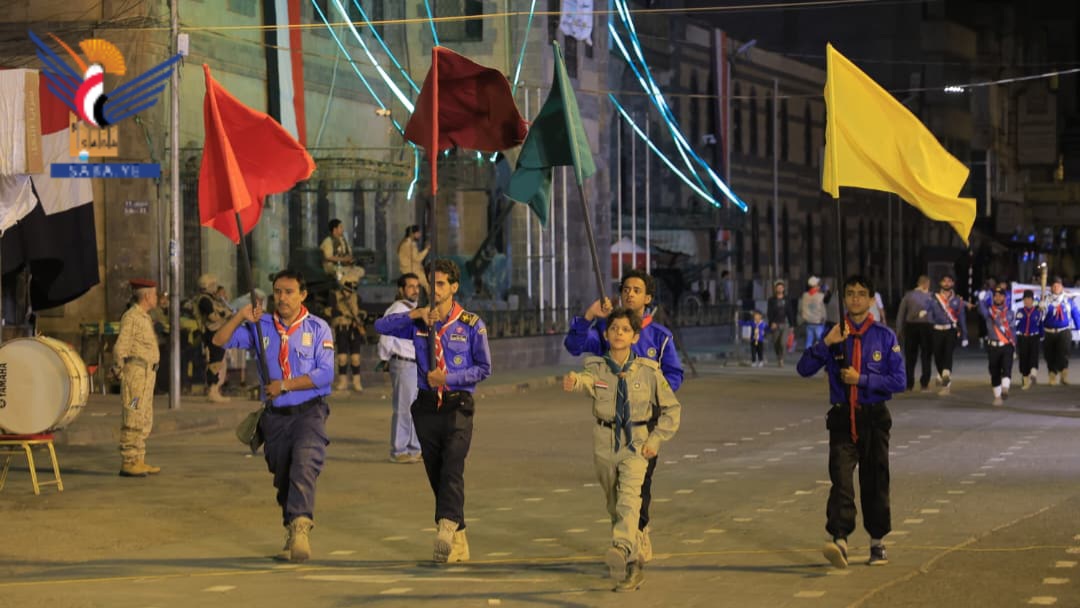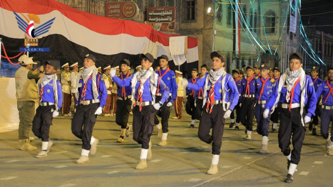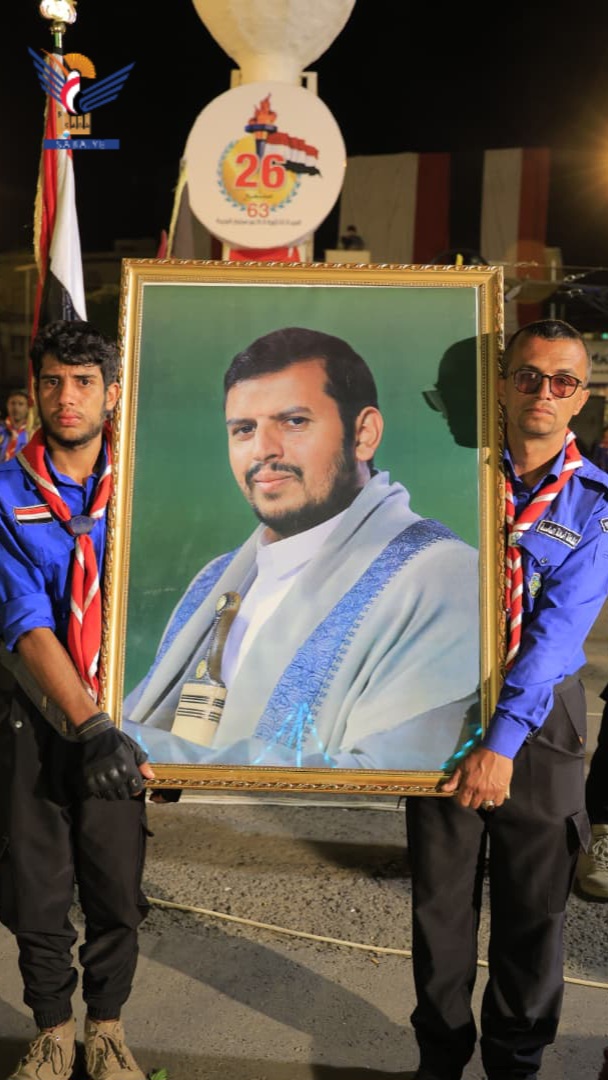 عقب ذلك قام أشبال وشباب الكشافة بالمرور من أمام منصة الاحتفال، على هيئة استعراض جسّد فيه المشاركون الأهداف الستة لثورة الـ26 من سبتمبر الخالدة، ومبادئها العظيمة، متشحين بأعلام اليمن حاملين صورة قائد الثورة، السيد عبدالملك بدر الدين الحوثي، وهتفوا بشعارات الحرية المعبّرة عن عظمة ومكانة هذه الثورة الوطنية في نفوس اليمنيين ووجدانهم.