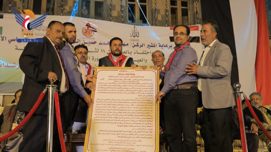 وقدّمت جمعية الكشافة والمرشدات وثيقة وفاء وعرفان مرفوعة من شباب الجمهورية اليمنية إلى فخامة المشير الركن مهدي المشاط، رئيس المجلس السياسي الأعلى - القائد الأعلى للقوات المسلحة، قرأها القائد الكشفي أسامة علي شداد جاء فيها: