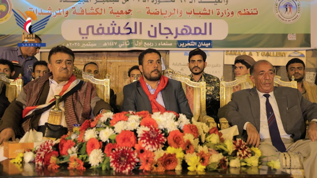 شهد ميدان التحرير بالعاصمة صنعاء، مساء اليوم، مهرجاناً شبابياً كشفياً لإيقاد شعلة العيد الـ 63 لثورة 26 سبتمبر المجيدة، نظمته وزارة الشباب والرياضة ممثلة بجمعية الكشافة والمرشدات.