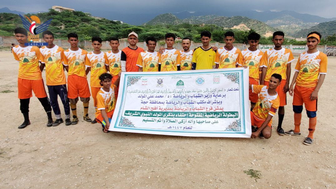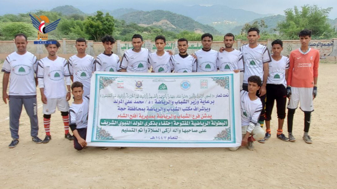 أحرز فريق الطوفان بطولة المولد النبوي لكرة القدم في مديرية أفلح الشام بمحافظة حجة.