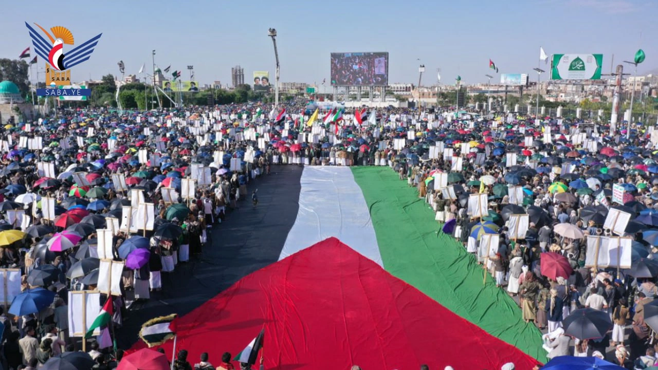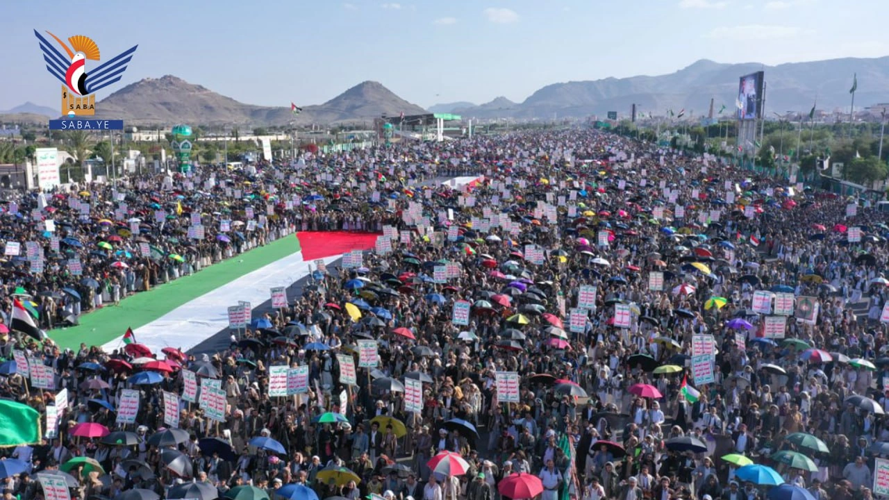 وأوضح بيان صادر عن المسيرة أنه استجابة لله سبحانه وتعالى، وجهاداً في سبيله، وابتغاء لمرضاته، نستمر في خروجنا الأسبوعي في مسيرات مليونية نصرة للشعب الفلسطيني المسلم المظلوم ووقوفاً بوجه كل المؤامرات التي تستهدف القضية الفلسطينية، والشعب الفلسطيني، وكل المنطقة.