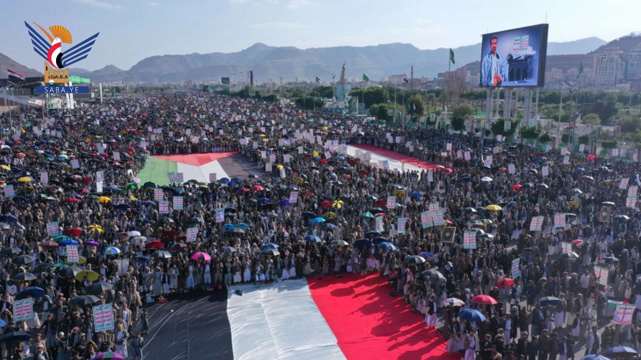 شهدت العاصمة صنعاء اليوم، طوفاناً بشرياً هادرا في مليونية "رفضا للمؤامرة الصهيوأمريكية.. وثباتا مع غزة حتى النصر".