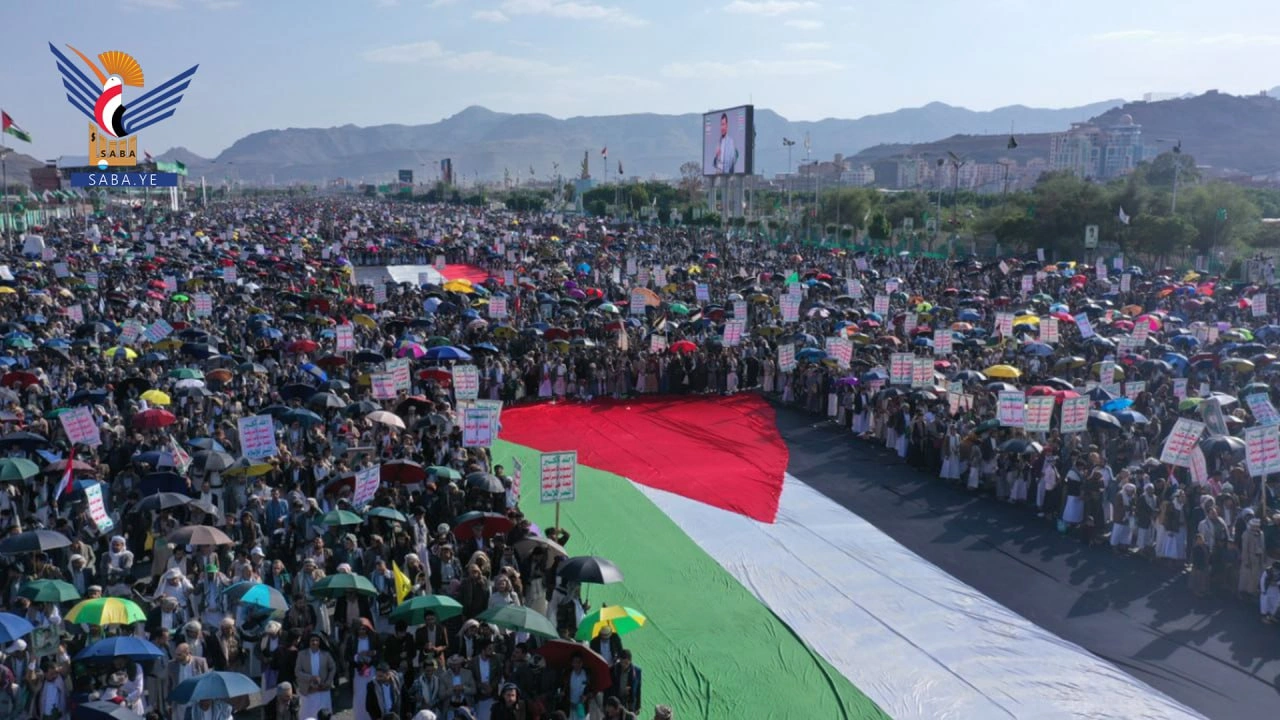 طوفان بشري بالعاصمة صنعاء "رفضا للمؤامرة الصهيوأمريكية.. وثباتاً مع غزة حتى النصر"