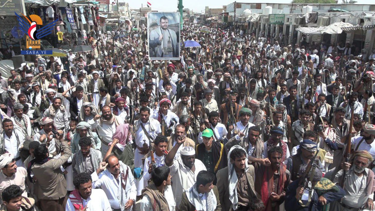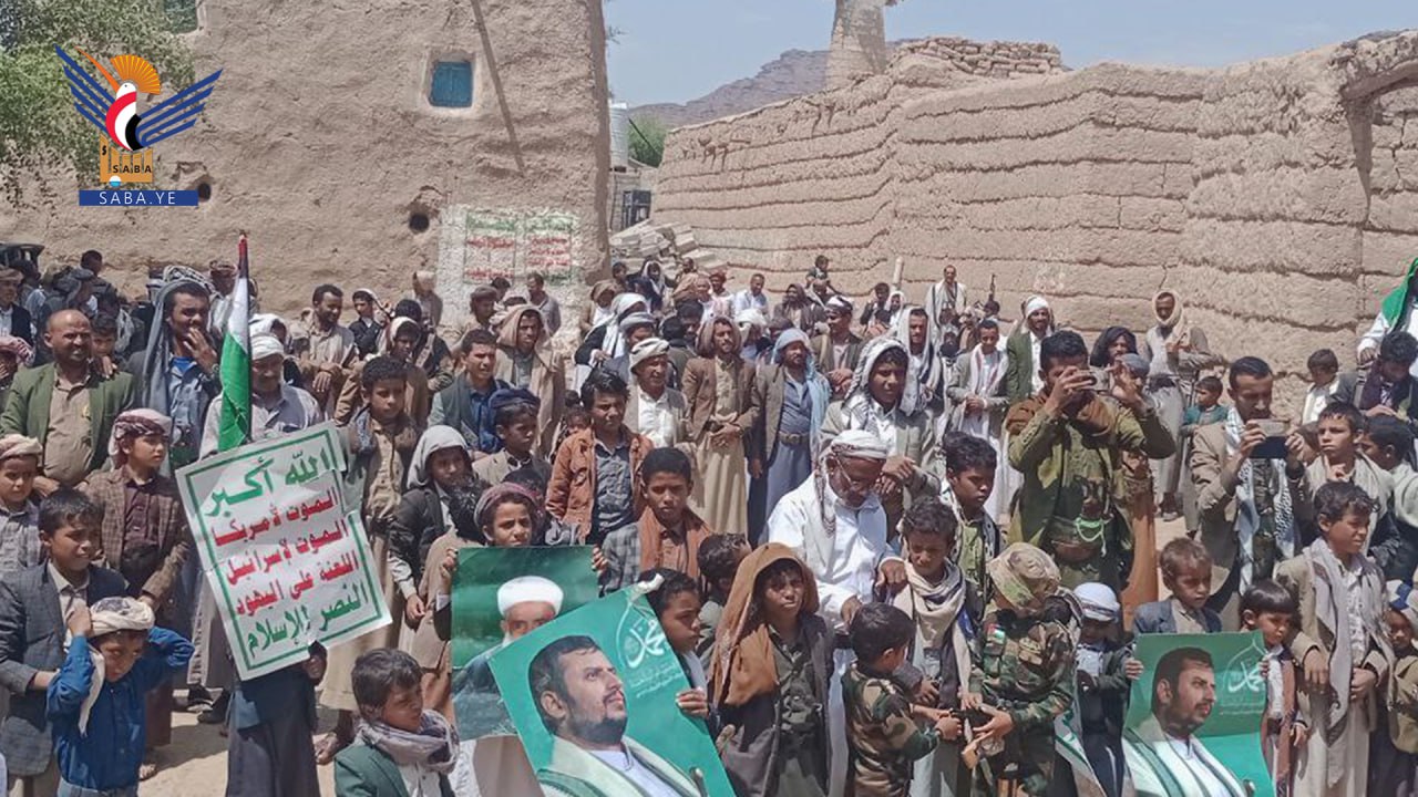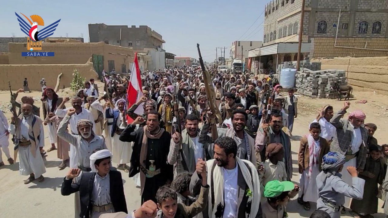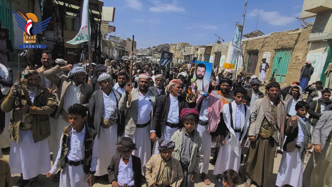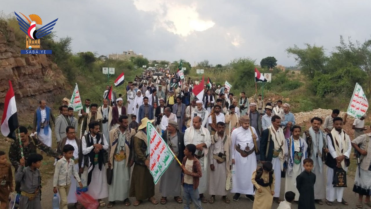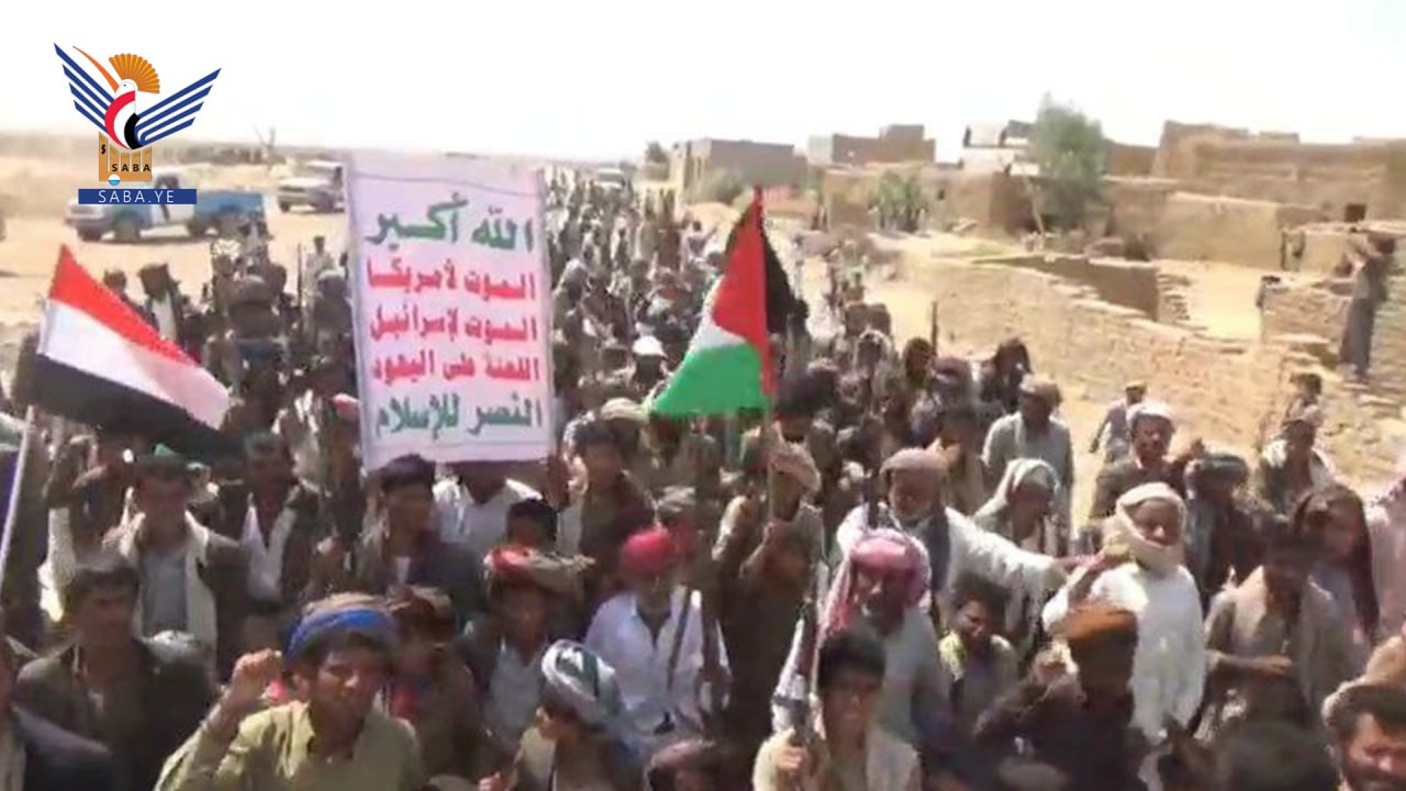 كما خرج أبناء مديريات الحميدات والمصلوب والغيل والخلق والسيل في 12 مسيرة، نددوا خلالها بجرائم العدو، ومباركين استمرار الصمود والثبات الأسطوري للمجاهدين في قطاع غزة، والذين يواصلون عملياتهم البطولية في محاور القتال ضد العدو الصهيوني.