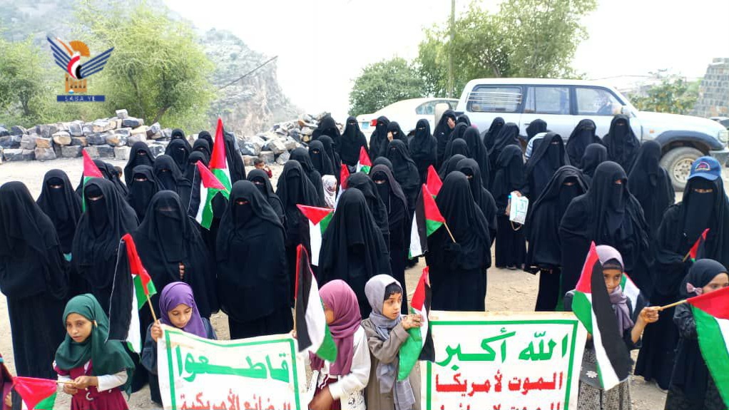 نظّمت الهيئة النسائية الثقافية بمحافظة حجة، اليوم، وقفات تضامنية مع الشعب الفلسطيني، تحت شعار " رفضًا للمؤامرة الصهيوأمريكية.. وثباتًا مع غزة حتى النصر".