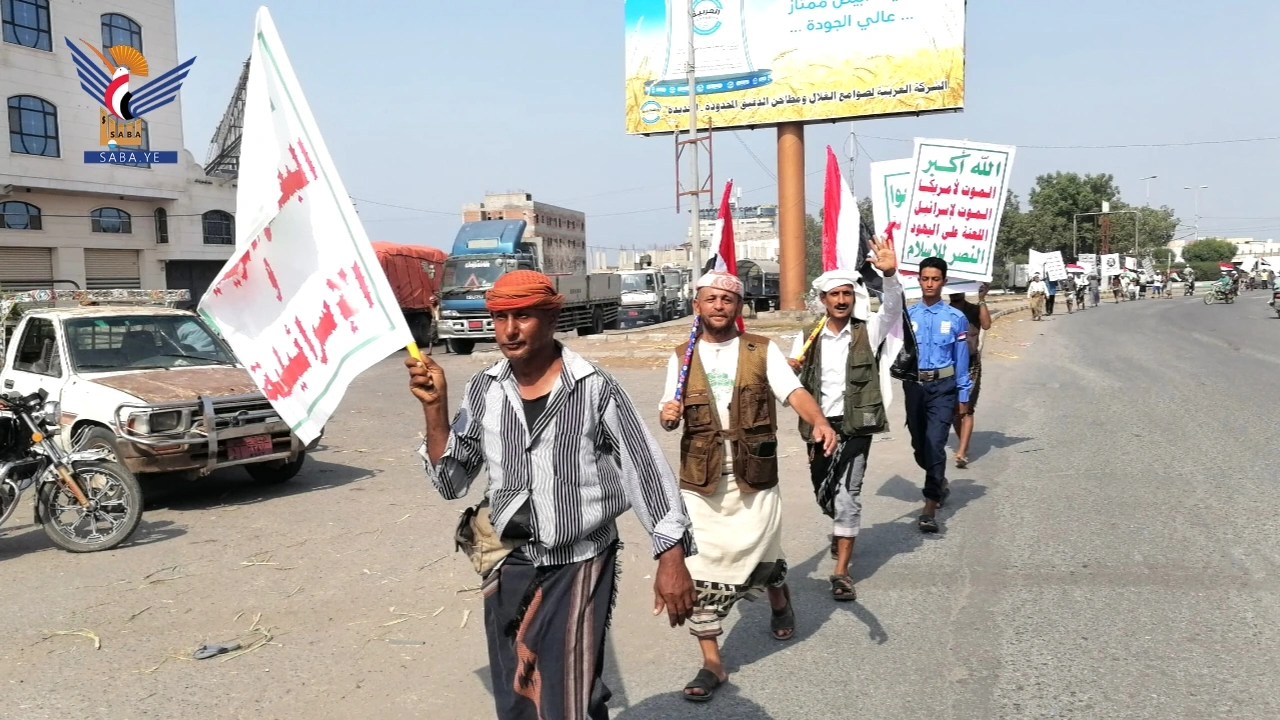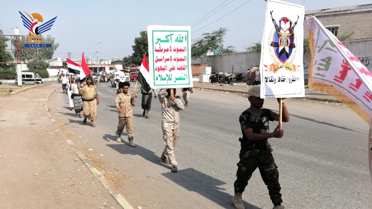 شهدت مديرية الحالي بمحافظة الحديدة، اليوم، مسيرا شعبيا لخريجي دورات التعبئة العامة المفتوحة "طوفان الأقصى" لعدد 80 مشاركا من مختلف شرائح أبناء المديرية.