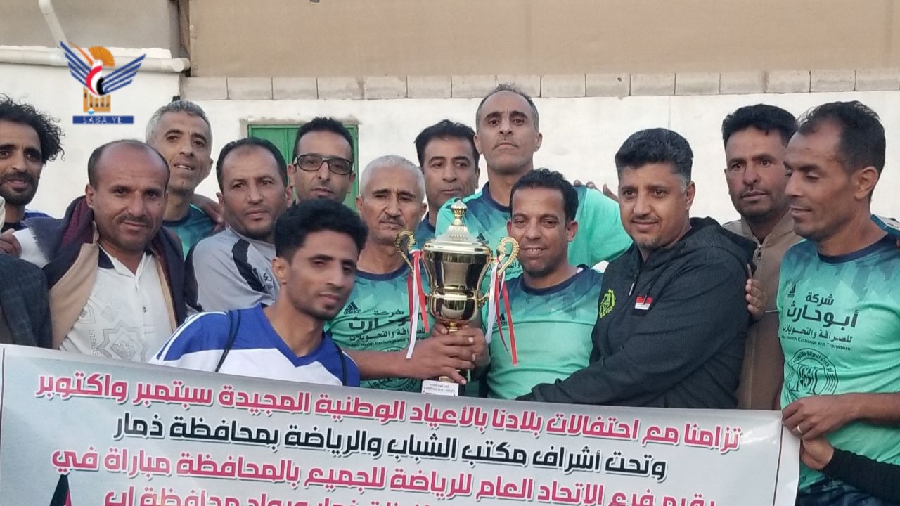 وفي ختام المباراة، كرّم مدير مكتب الشباب والرياضة بالمحافظة تيسير راوية، ورئيس فرع الاتحاد العام للرياضة للجميع خالد طيبة، فريق روَّاد ذمار بكأس البطولة.