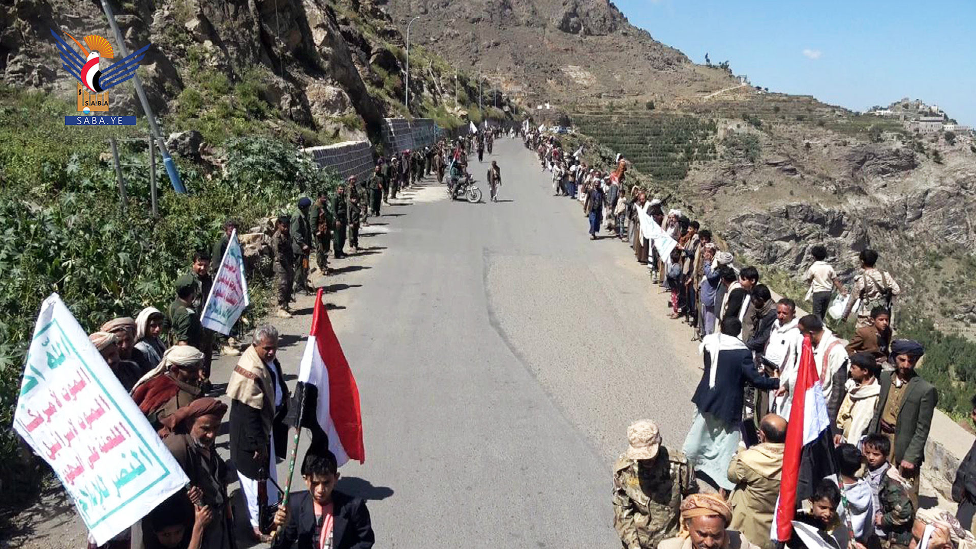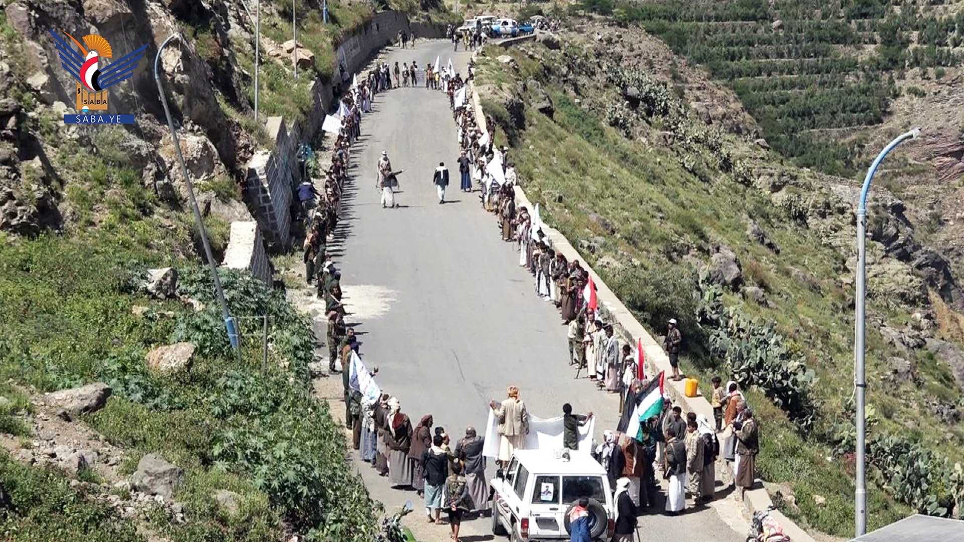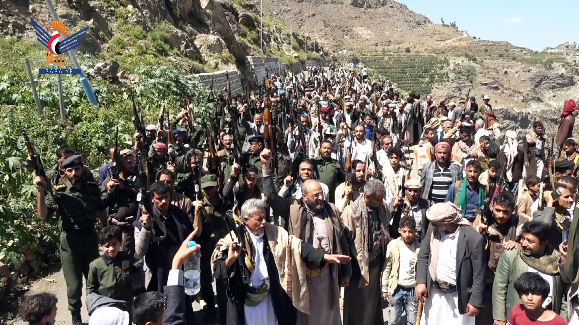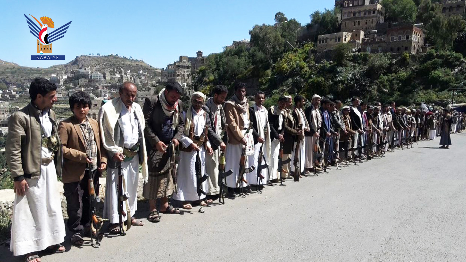 نظمت قوات التعبئة العامة بمديرية مناخة في محافظة صنعاء، مسيراً راجلًا ووقفة مسلحة تضامناً مع الشعب الفلسطيني، وتنديدًا بجرائم الكيان الصهيوني بحق سكان غزة.
