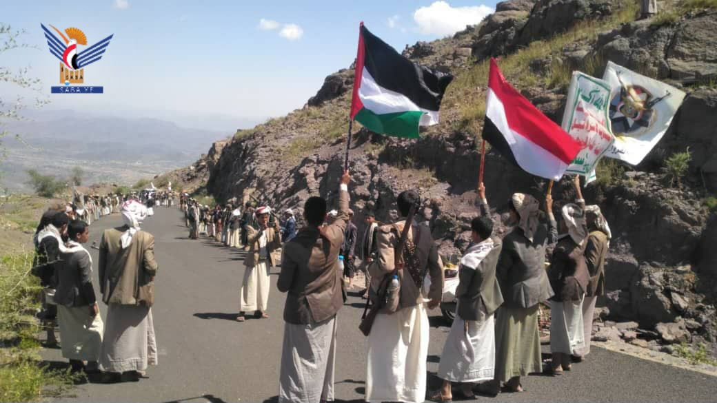 وفي مديرية القفلة نظم خريجو دورة "طوفان الأقصى" من أبناء عزلة الغربي مسيرا جاب قرى المنطقة، مرددين الهتافات المنددة بجرائم العدو الصهيوني بحق أبناء غزة.