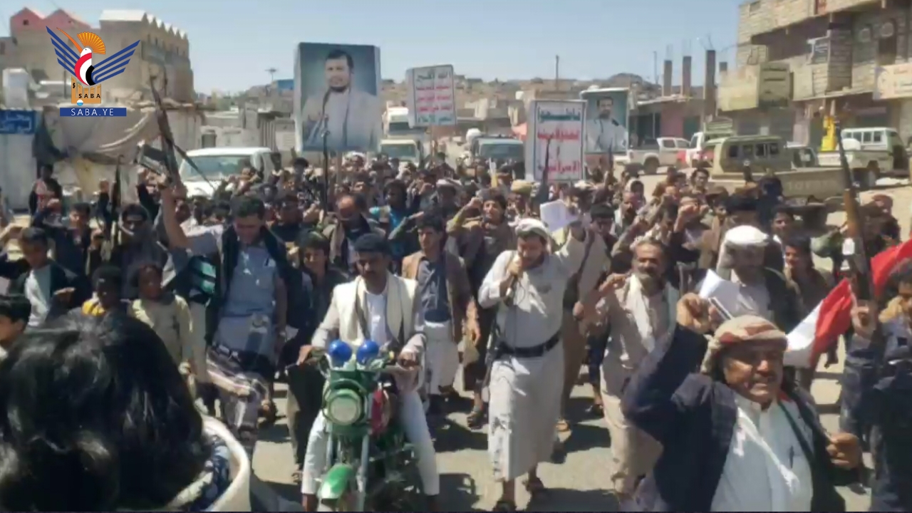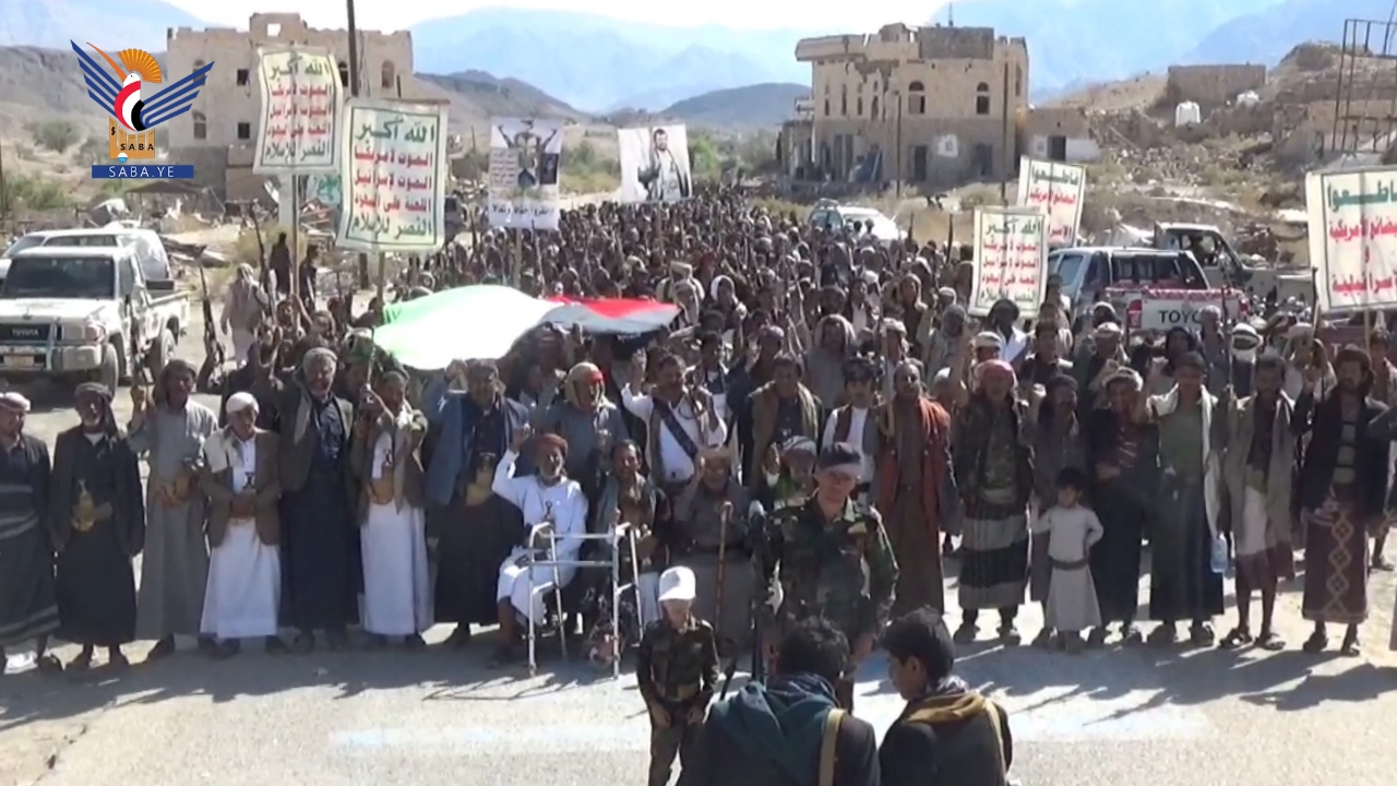 ونظم أبناء مديرية مجزر، مسيرة جماهيرية، أكدوا خلالها الثبات على العهد والوعد في نصرة الشعب الفلسطيني حتى تحقيق النصر ووقف العدوان ورفع الحصار.
