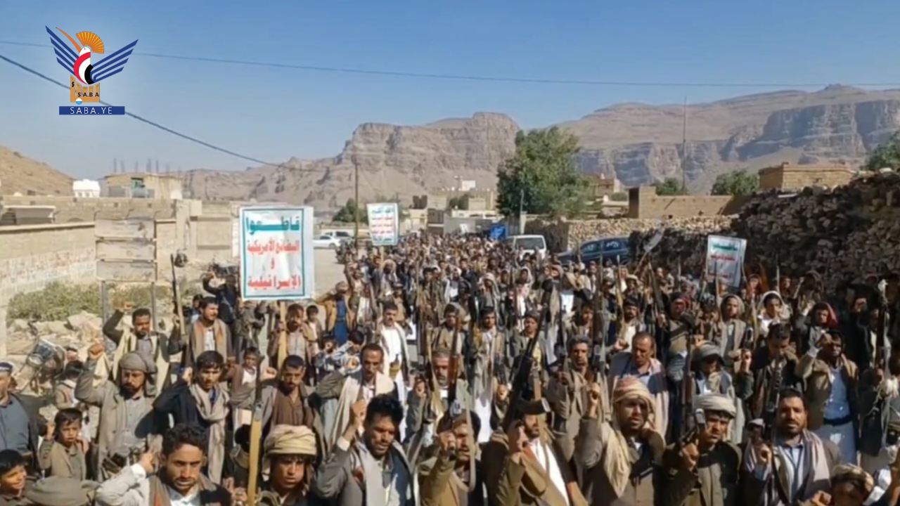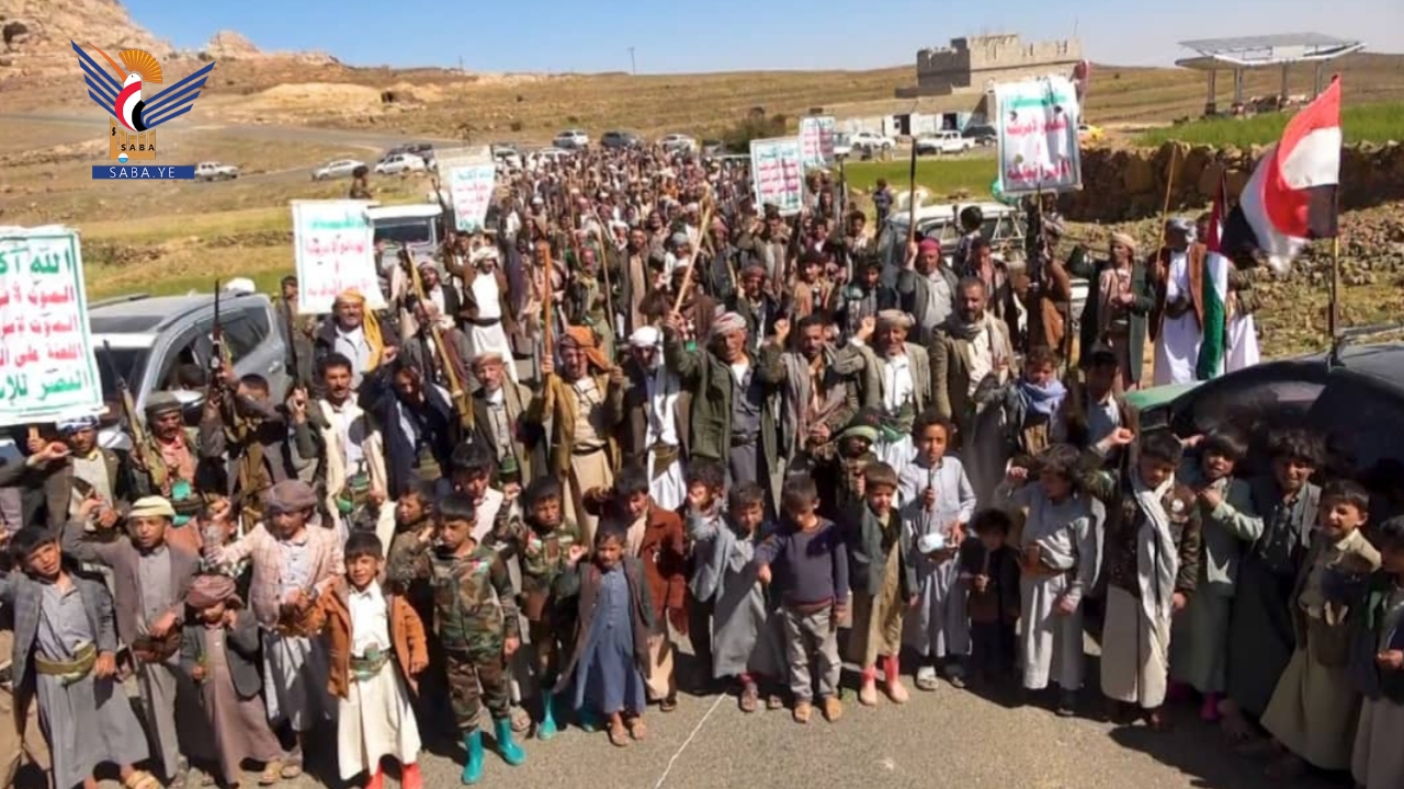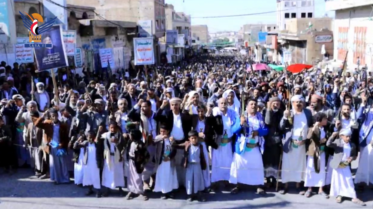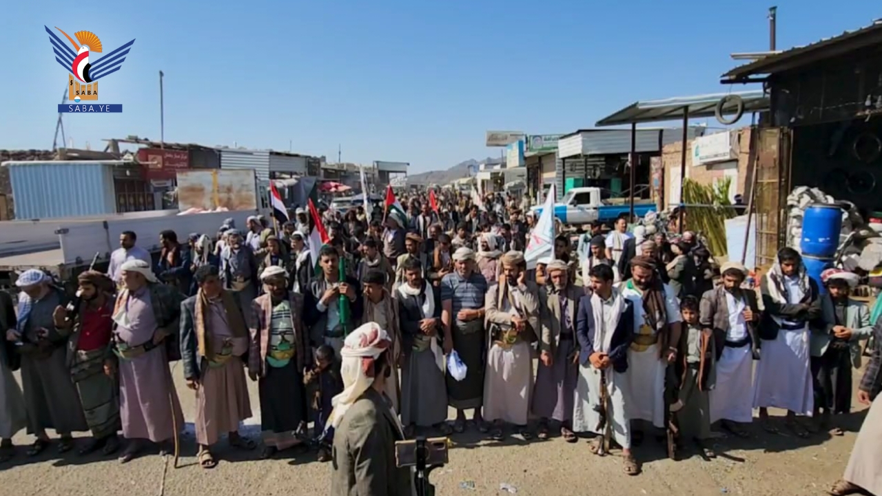 شهدت محافظة عمران اليوم خروج مسيرات جماهيرية حاشدة في 155 ساحة، بمركز المحافظة والمديريات والعزل، إحياءً لذكرى عامين من إسناد الشعب الفلسطيني تحت شعار "طوفان الأقصى.. عامان من الجهاد والتضحية حتى النصر".