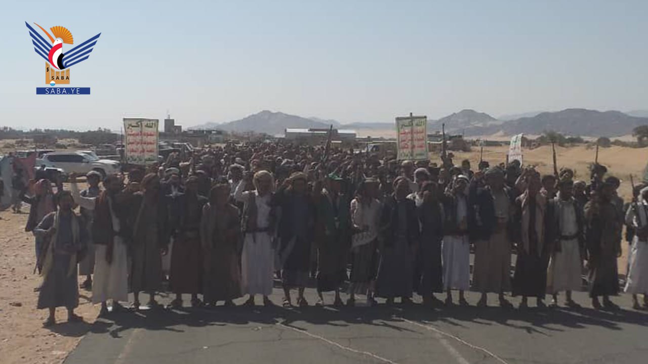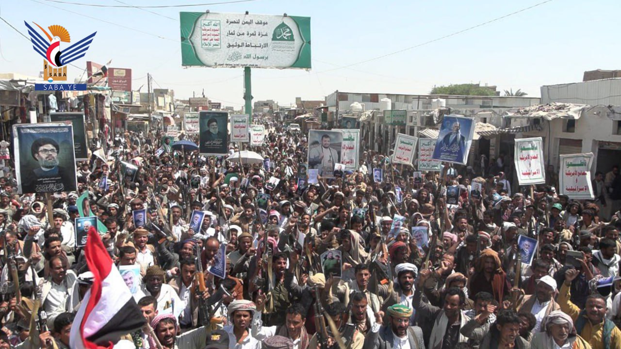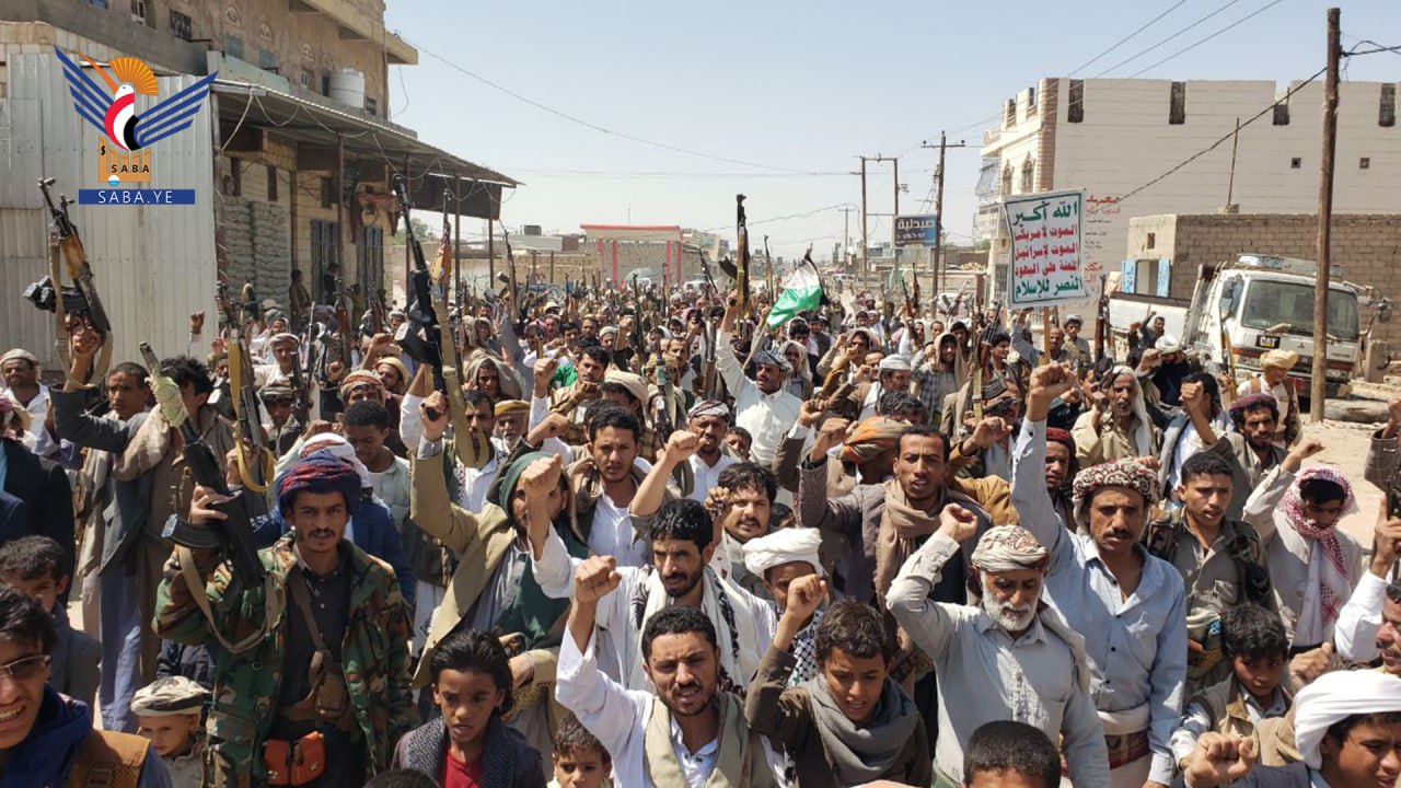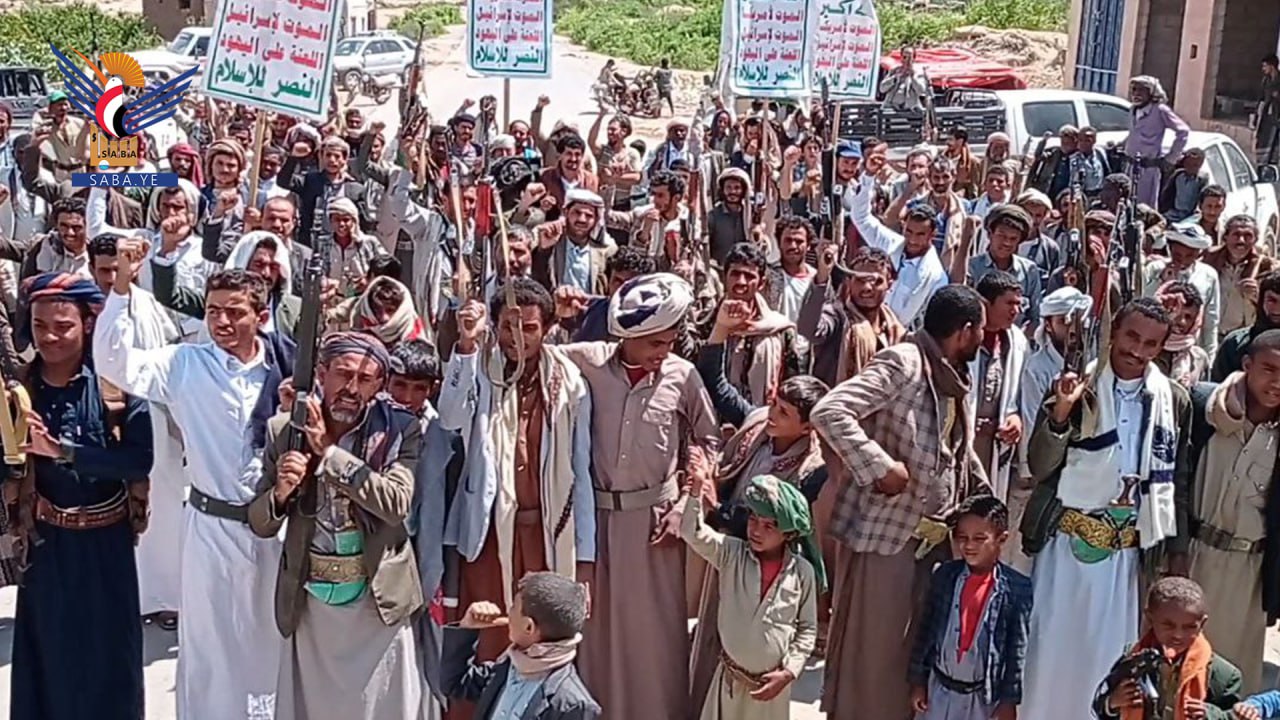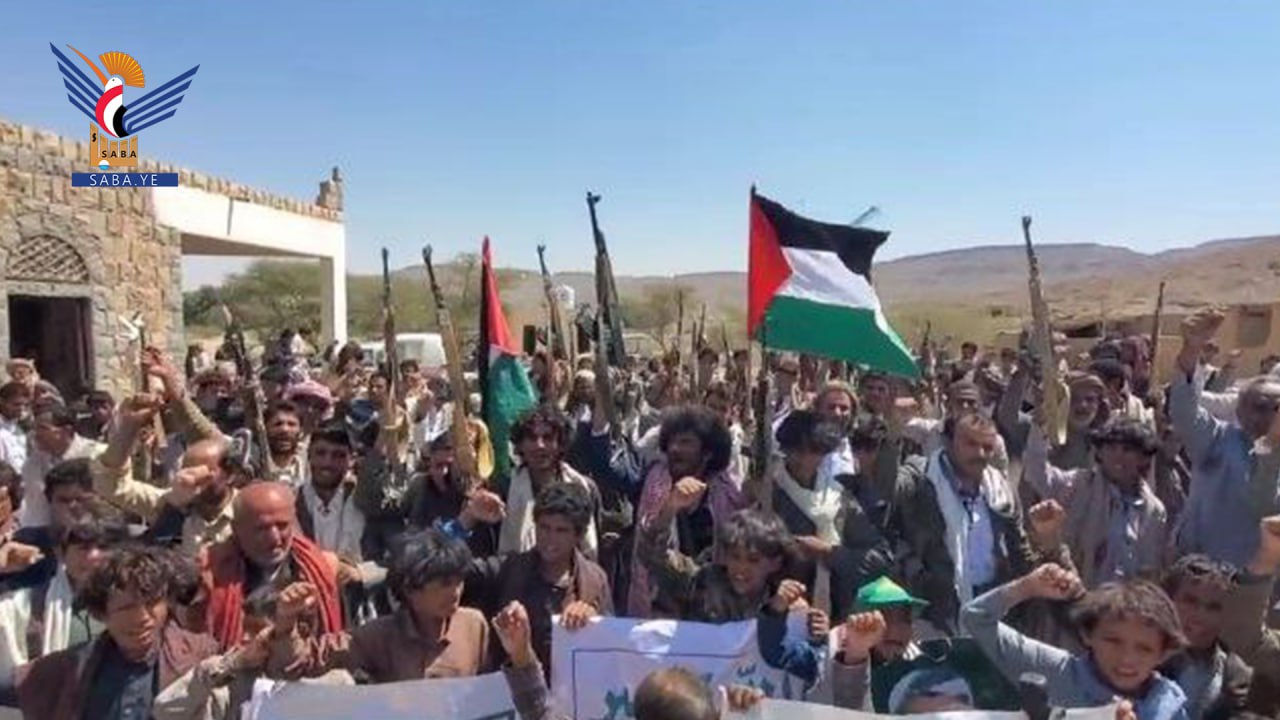 وأعلن أبناء المحافظة أن الشعب اليمني سيظل حاضرا في مواجهة أي عدوان قد يقدم عليه الصهاينة المجرمين بحق أي شعب عربي أو إسلامي.