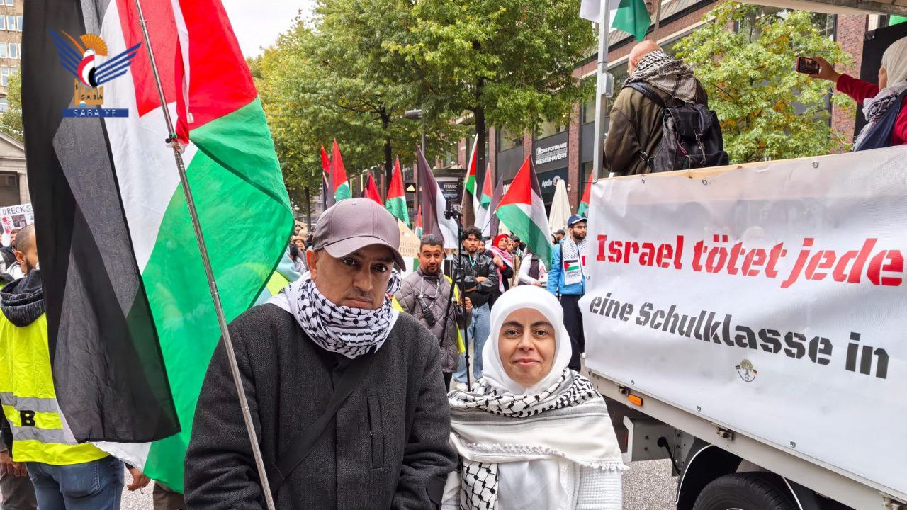 نظمت الجاليتان اليمنية والفلسطينية، في مدينة هامبورغ الألمانية، الجمعة، مسيرة حاشدة تضامنًا مع غزة وابتهاجًا بانتصار المقاومة، واسهامًا في تعرية الكيان الإسرائيلي.