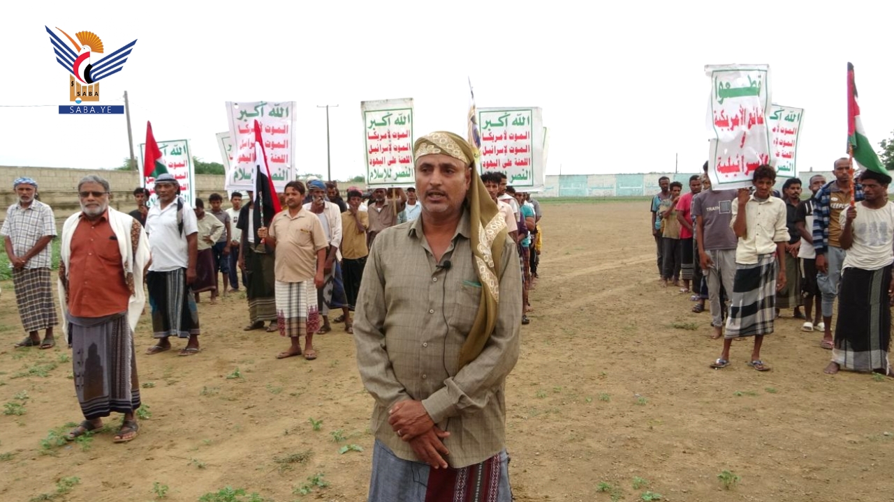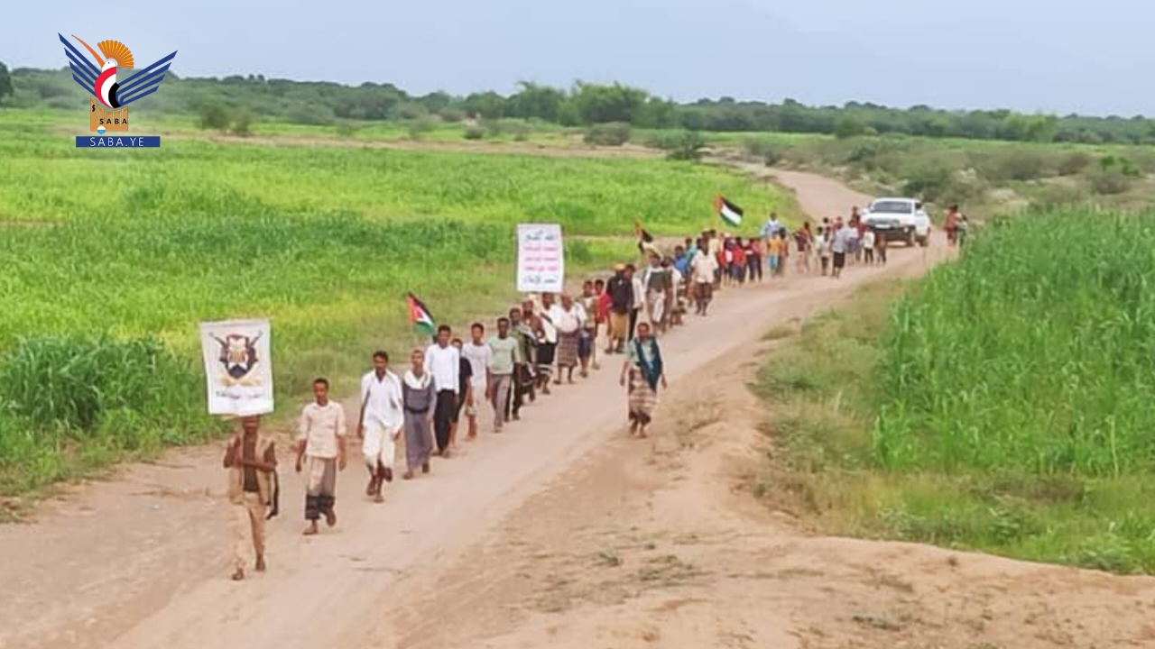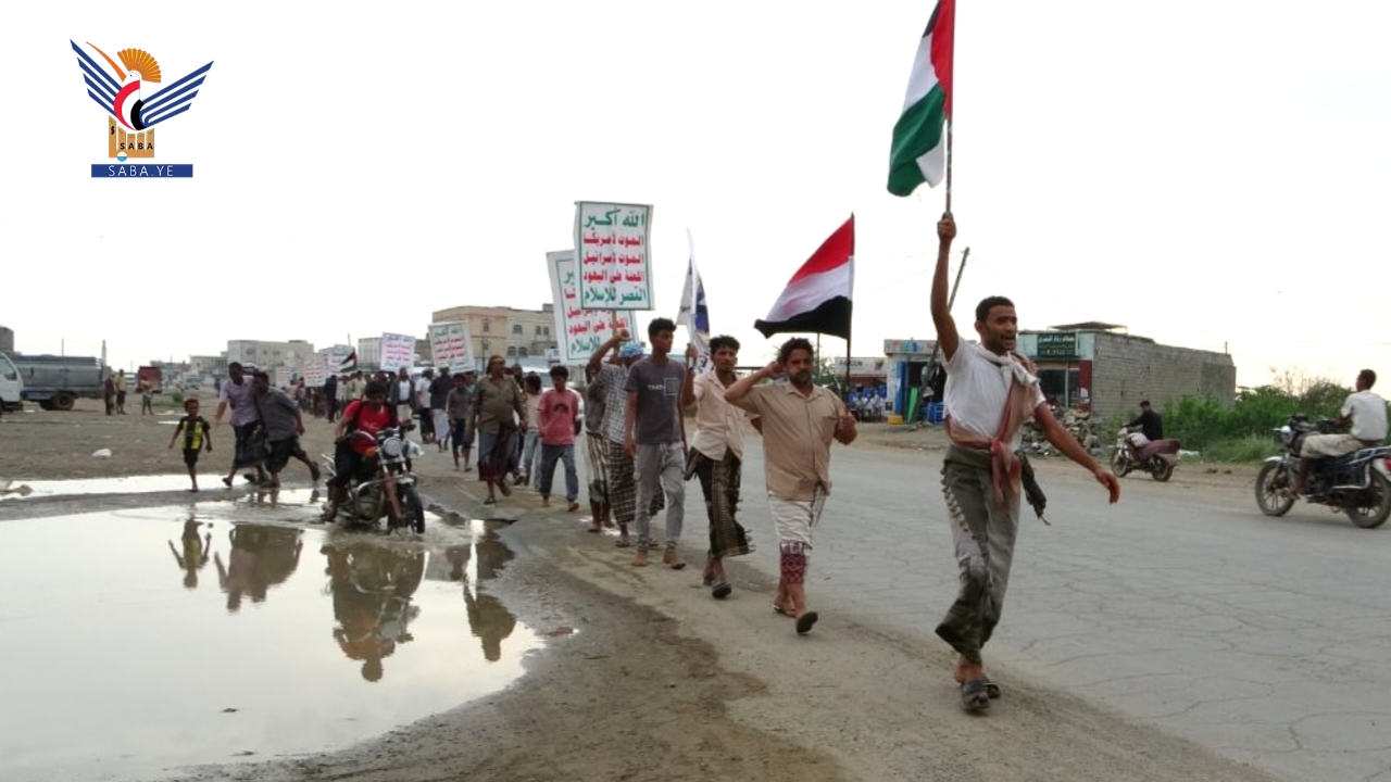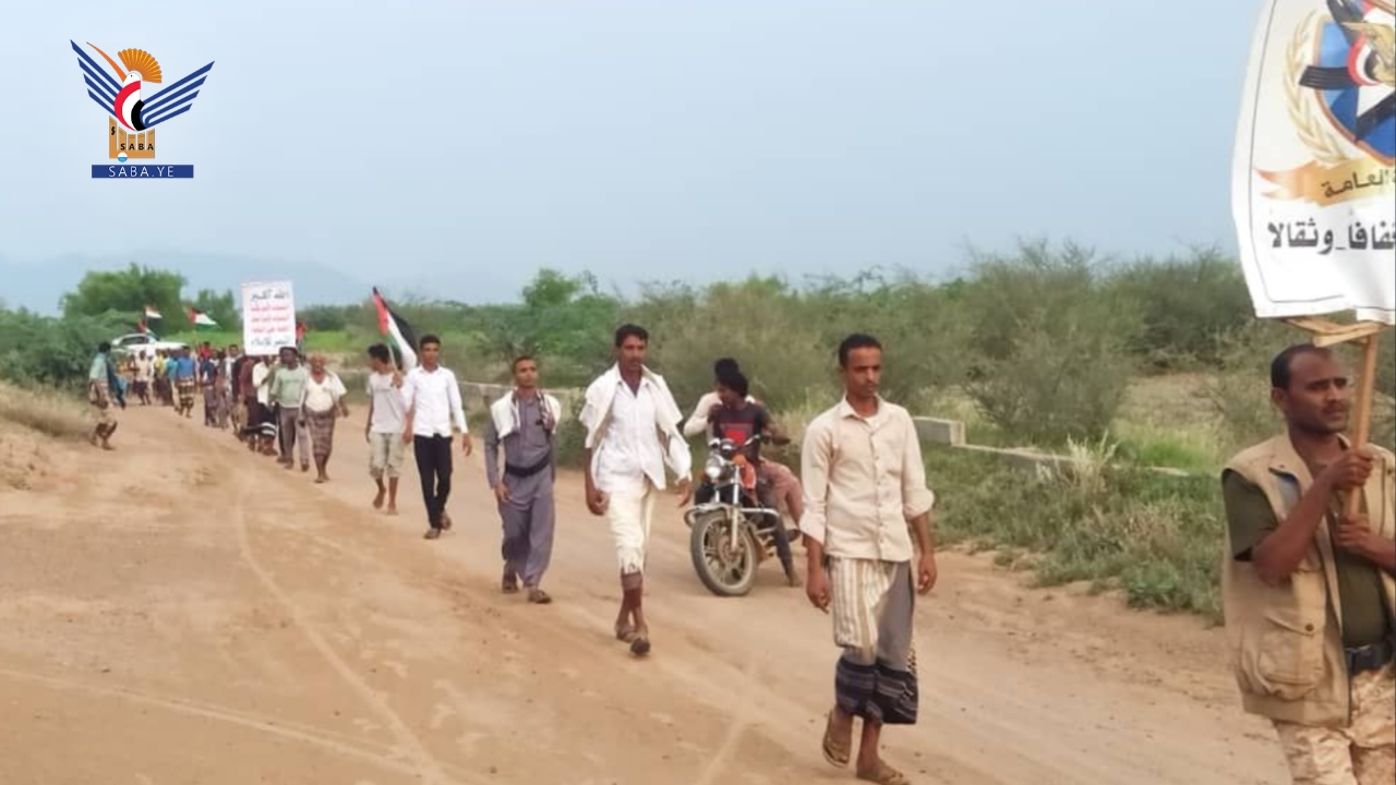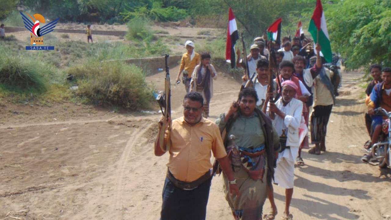 وفي سياق متصل، نظم مسيران ووقفتان لخريجي دورات "طوفان الأقصى" في منطقة العباسي بعزلة الطرف الشامي ومنطقة الغوادر بعزلة الطرف اليماني بمديرية بيت الفقيه، عبر المشاركون فيها عن الولاء لله والوطن والقيادة الثورية والسياسية، مجددين العهد بمواصلة الصمود والاستعداد للجهاد متى ما اقتضت الضرورة.