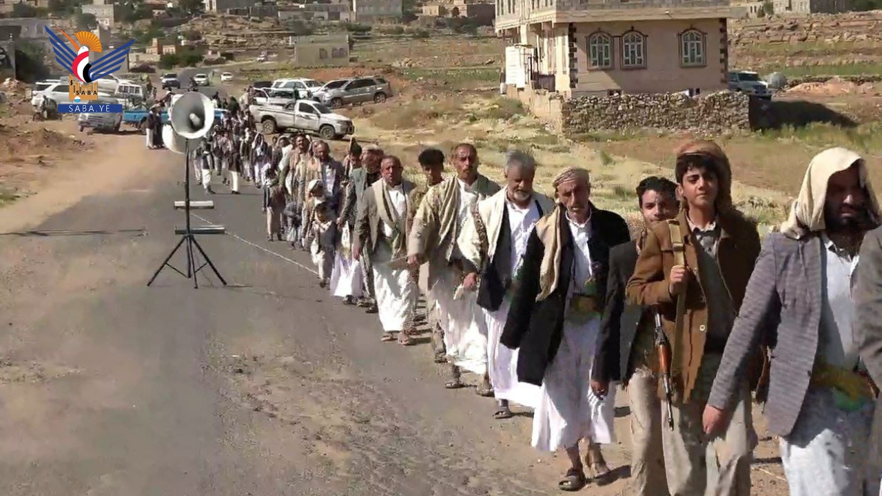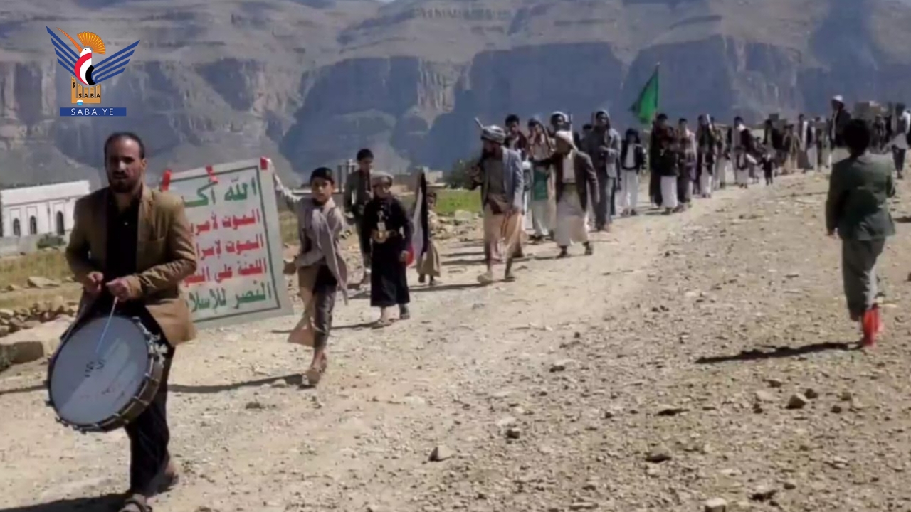 وفي مديريتي ذيبين وشهارة، نُظمت التعبئة العامة، مسيراً شعبياً من خريجي دورات طوفان الأقصى في عزلة بني جبر.