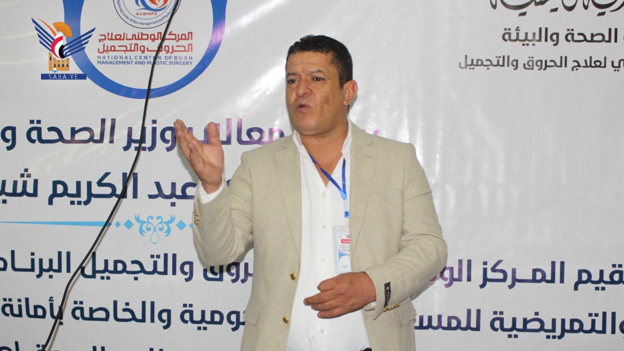 من جانبه استعرض مدير المركز الوطني لعلاج الحروق والتجميل الدكتور يحيى السياغي أهداف البرنامج في رفع الوعي وتحسين تقديم خدمات الرعاية من قبل الكوادر الصحية والطبية لمرضى الحروق قبل نقلها لفروع المركز المتخصصة في جميع المحافظات.