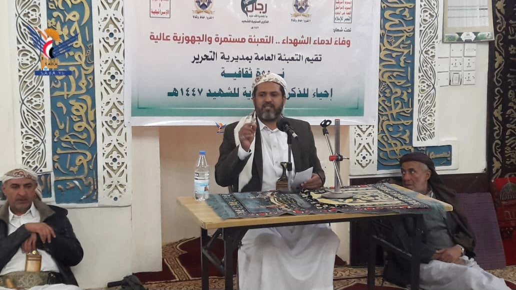 دشنت التعبئة بمديرية التحرير بأمانة العاصمة، اليوم، فعاليات الذكرى السنوية للشهيد ١٤٤٧هـ، بفعالية ثقافية تحت شعار "وفاءً لدماء الشهداء.. التعبئة مستمرة والجهوزية عالية".
