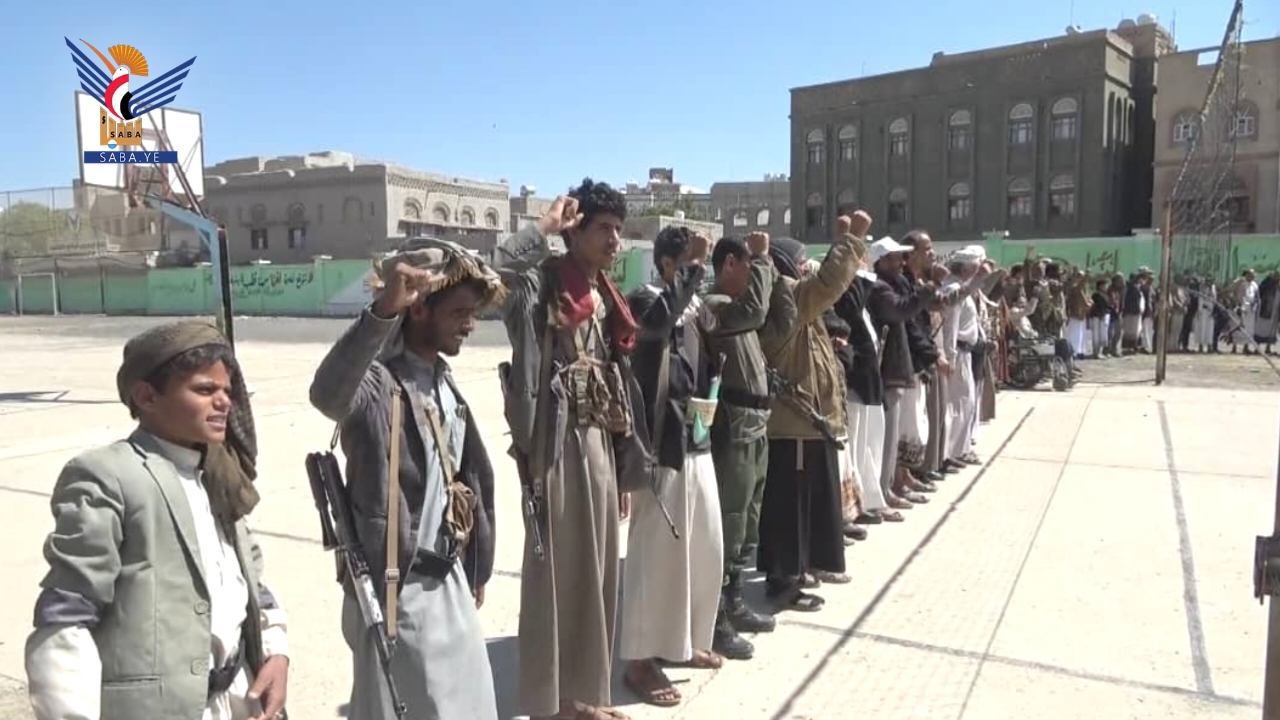 نظم أبناء مدينة رداع بمحافظة البيضاء اليوم، وقفة مسلحة تأكيداً على استمرار النفير والجهوزية العالية، وتجديدًا للعهد بالوفاء للقائد الجهادي الشهيد الفريق الركن محمد الغماري.