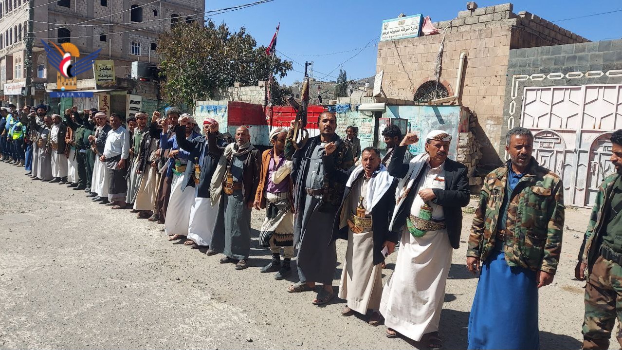 أقيمت بمحافظة إب اليوم، وقفات قبلية مسلحة وحاشدة في مدينة يريم وفي عزلة الافيوش بمديرية مذيخرة وفي قطاع مشورة بمديرية ريف إب، تنديدًا بجرائم العدو الصهيوني الثلاثاء الماضي في قطاع غزة وتزامنًا مع الذكرى السنوية للشهيد 1447هـ.