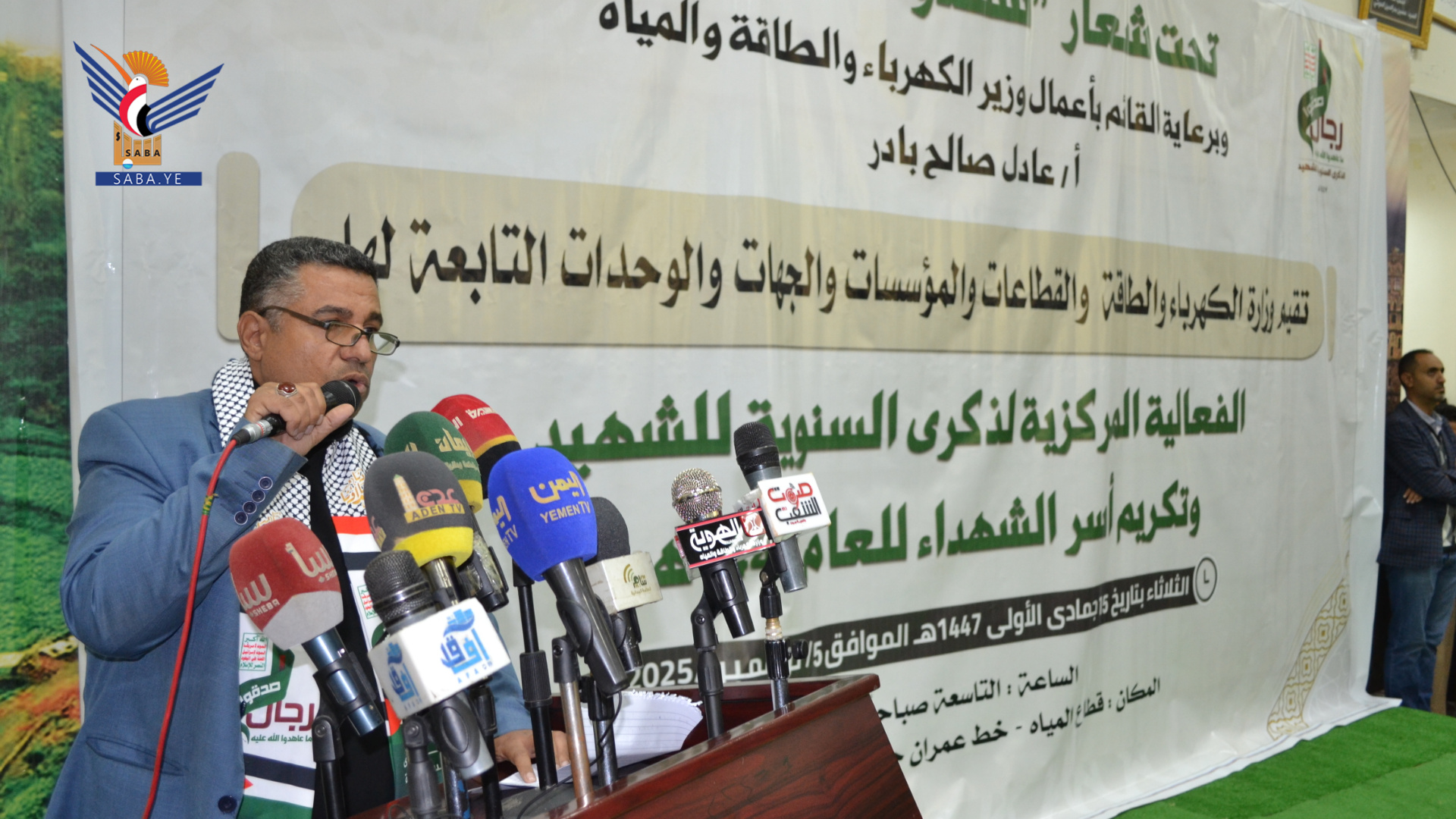 أحيت وزارة الكهرباء والطاقة والمياه والقطاعات والمؤسسات والجهات والوحدات التابعة لها، الذكرى السنوية للشهيد للعام 1447هـ بفعالية خطابية وتكريم أسر الشهداء من موظفيها.