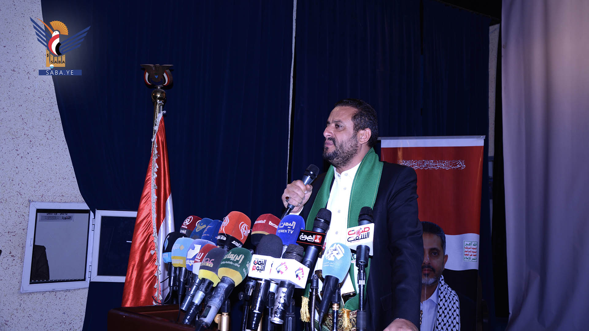 وخلال الفعالية، أكد وكيل وزارة الإعلام محمد منصور، أن دماء الشهداء ساهمت في رسم لوحة العزة والكرامة لليمن منذ انطلاق العدوان الأمريكي السعودي عام 2015م، وتعزيز حضور اليمن في نصرة القضية الفلسطينية.