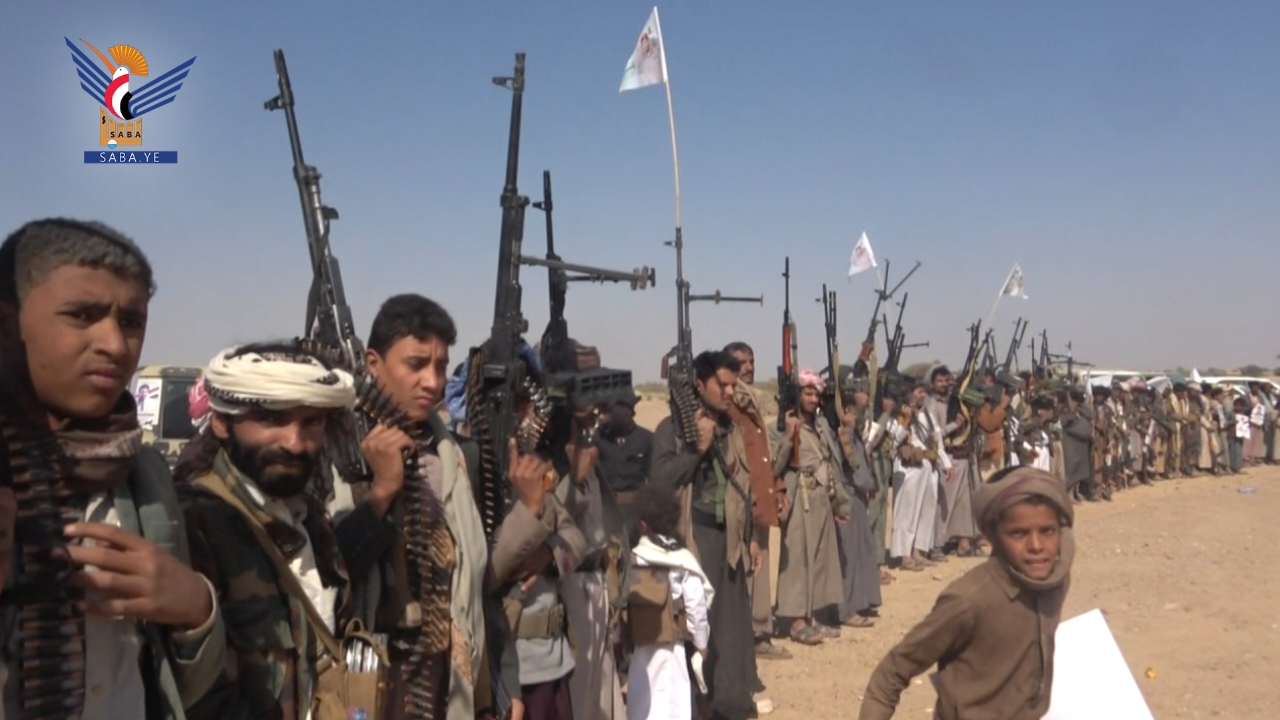 وأكد بيان اللقاء، استمرار قبائل الجوف في التحشيد والتعبئة والتدريب والتأهيل، استعدادًا لأي خيارات تتخذها القيادة الثورية في مواجهة العدو الإسرائيلي ومرتزقته.