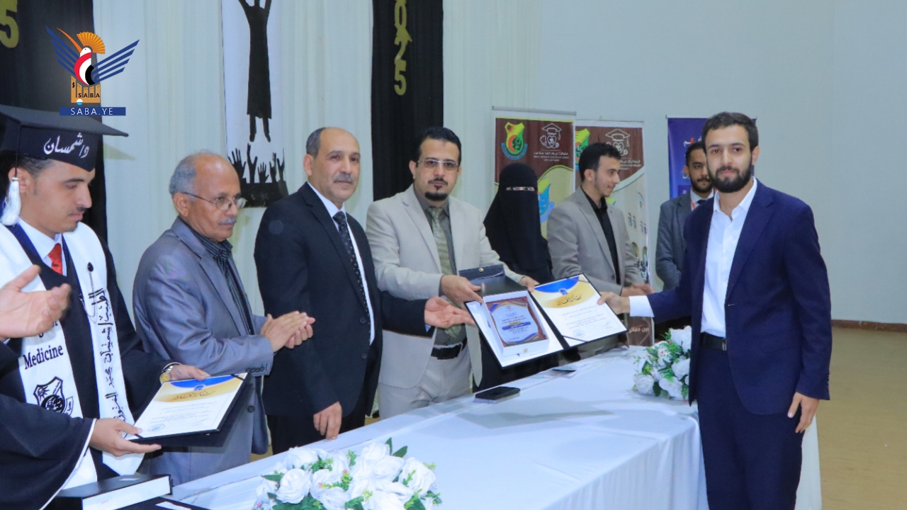 وفي الحفل، بارك وزير التربية والتعليم والبحث العلمي، حسن الصعدي، للطلاب وأولياء أمورهم بتخرجهم بعد صبر وتحمل لسنوات في التحصيل العلمي، ووصولهم إلى هذه المرحلة من التفوق والنجاح، وعلى عتبات الالتحاق في القطاع الصحي والمساهمة في خدمة الوطن.