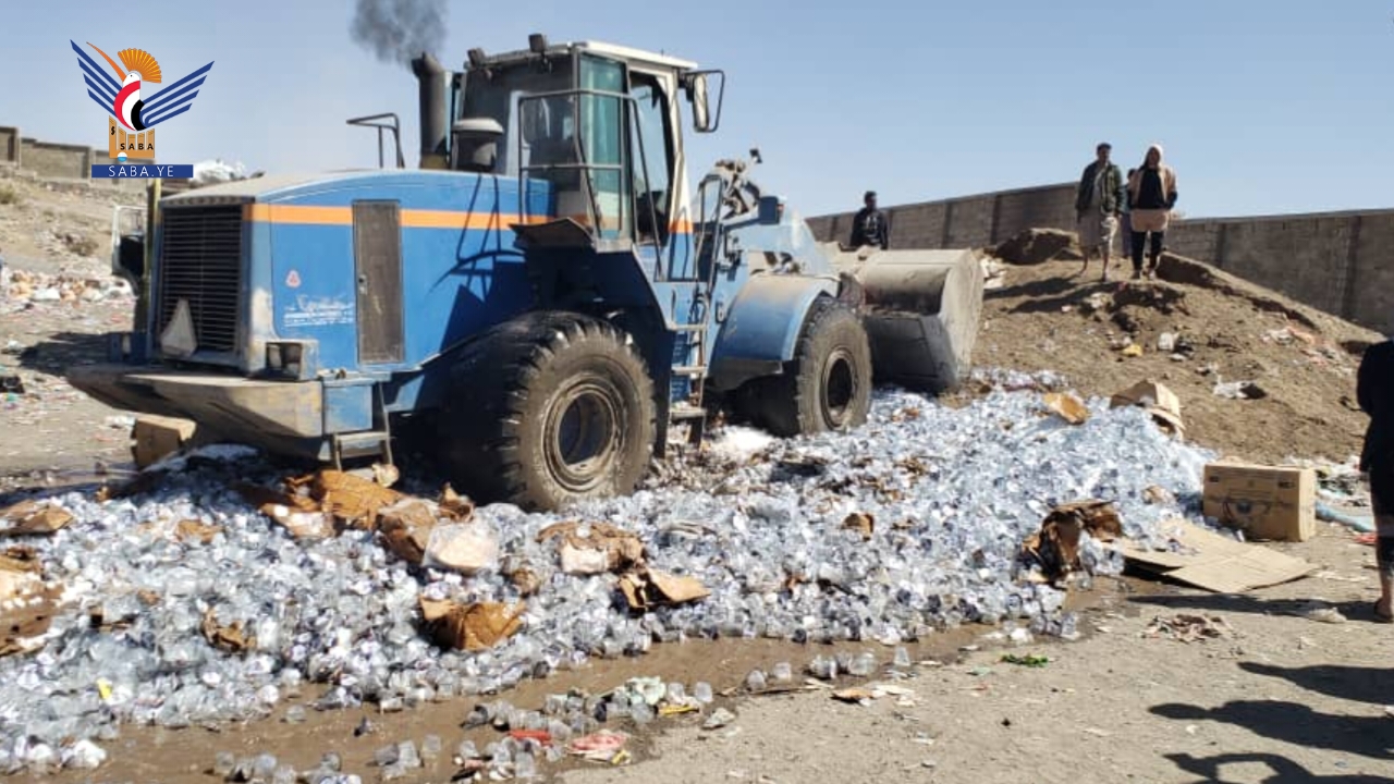 صحة البيئة بصنعاء الجديدة تتلف 21 طنًا من عبوات المياه منتهية الصلاحية