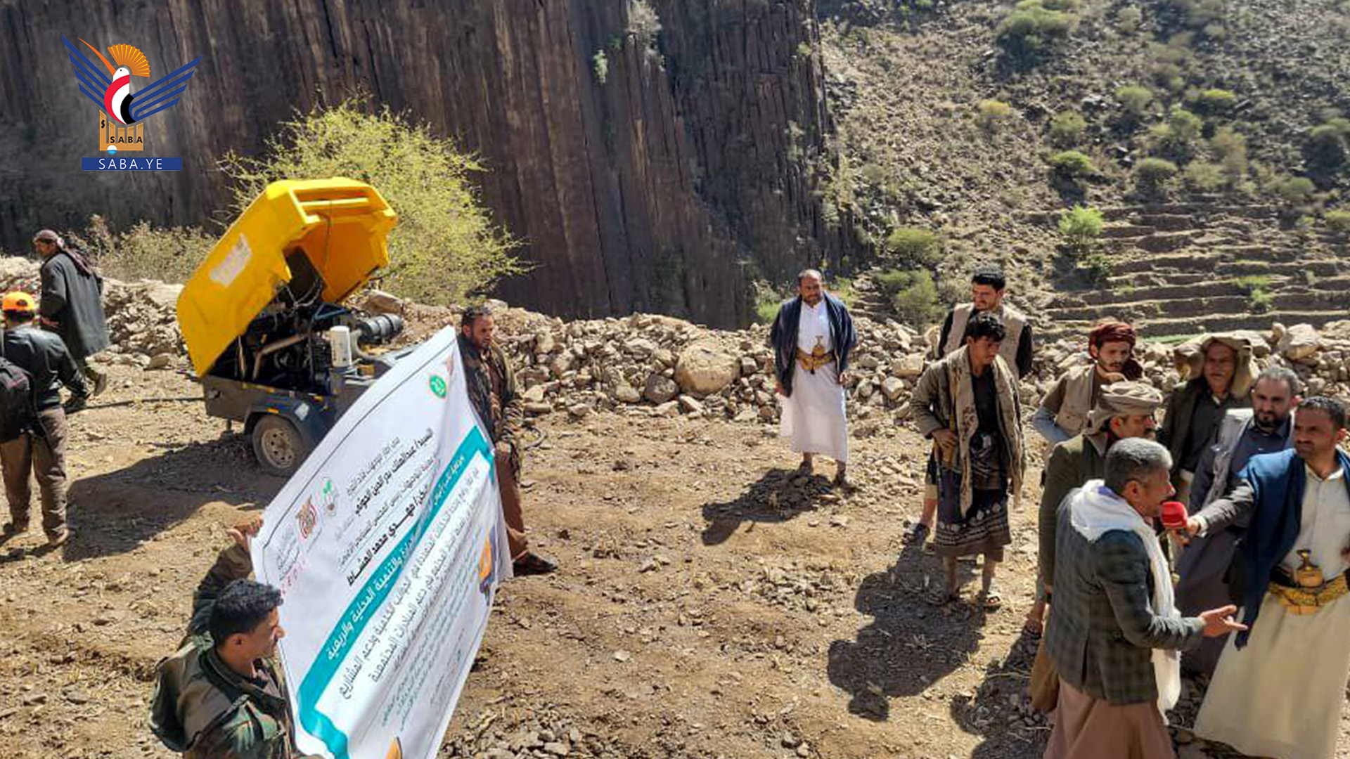 سلمت وحدة التدخلات التنموية الطارئة، الجمعية التعاونية الزراعية بمديرية مغرب عنس في محافظة ذمار، معدة "كمبريشن هواء" مخصّصة لقطع الأحجار لتنفيذ مشروع رصف طريق القوز – المرحلة الثانية في إطار دعم المبادرات المجتمعية الفاعلة في تحسين البنية التحتية الريفية.