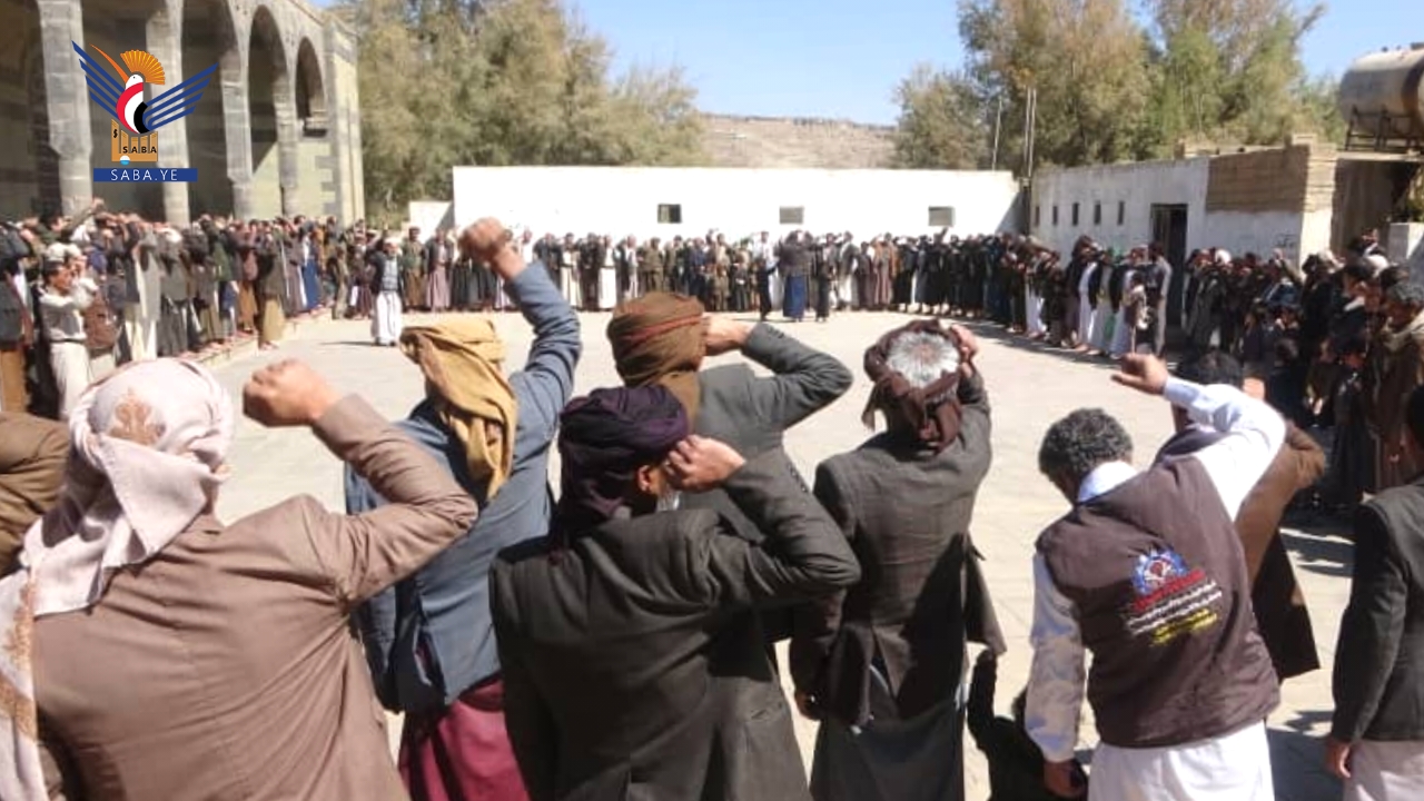 وأكد المشاركون في الوقفات التي شهدتها قرى وعزل مديريات المحافظة، مواصلة التعبئة والتحشيد، وتعزيز الجاهزية لمواجهة الأعداء وعملائهم وإفشال مخططاتهم التي تستهدف اليمن وسيادته ووحدته، والثبات على الموقف المساند للأشقاء في غزة وكل فلسطين.