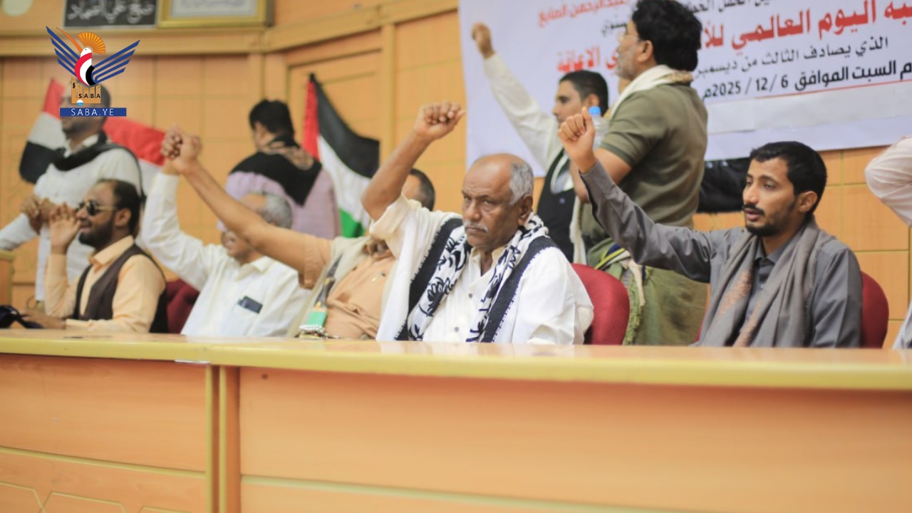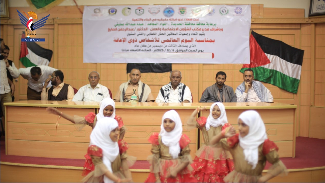 نظم اتحاد وجمعيات الأشخاص ذوي الإعاقة بمحافظة الحديدة اليوم حفلًا خطابيًا بمناسبة اليوم العالمي للأشخاص ذوي الإعاقة، أقيم تحت شعار "نحو شراكة حقيقية نحو البناء والتنمية".