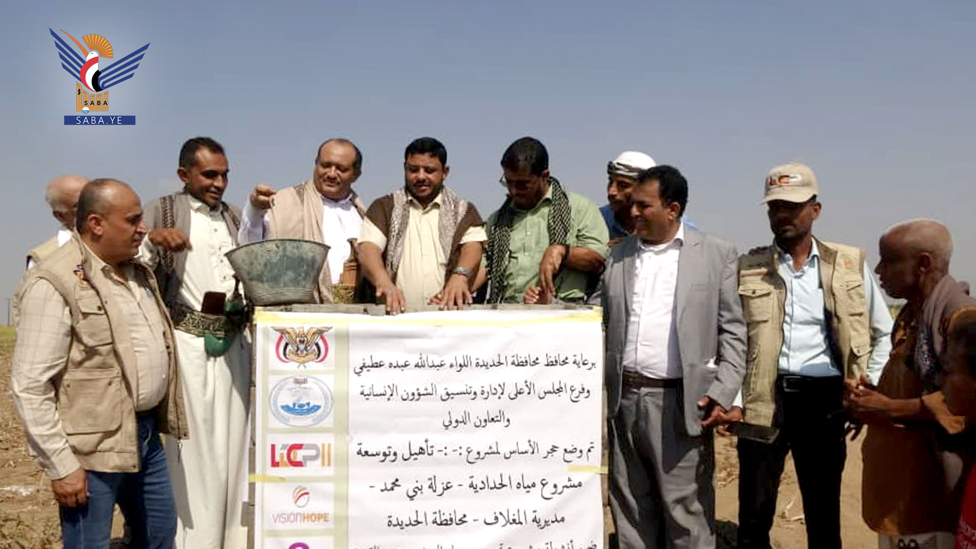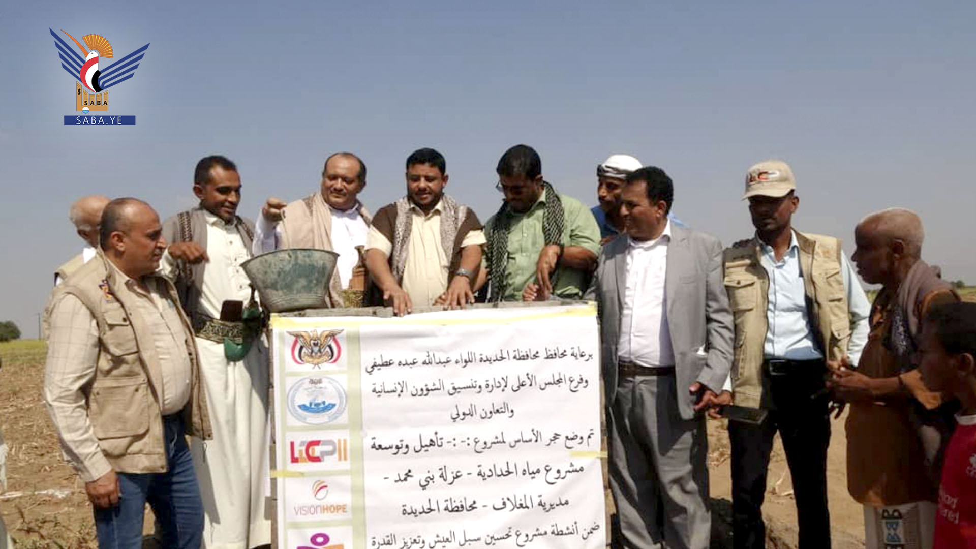 كما وُضع حجر الأساس لمشروع تأهيل وتوسعة مشروع مياه الحدادية بقرية الحدادية عزلة بني محمد، ويشمل بناء خزان مياه برجي خرساني بارتفاع 21 مترا وسعة 75 مترا مكعبا، وتركيب منظومة ضخ تعمل بالطاقة الشمسية وبناء غرفة تحكم، إلى جانب تنفيذ شبكة مياه بطول 9,400 متر طولي، بتكلفة قدرها 125 ألف و595 دولارا، يستفيد منها 6 آلاف و978 مستفيد.
