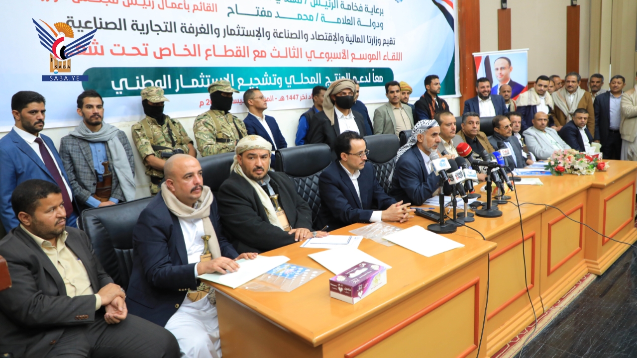 نظمّت وزارتا المالية، والاقتصاد والصناعة والاستثمار، والغرفة التجارية الصناعية بأمانة العاصمة، اليوم اللقاء الأسبوعي الثالث مع القطاع الخاص، تحت شعار "معًا لدعم المنتج المحلي وتشجيع الاستثمار الوطني".