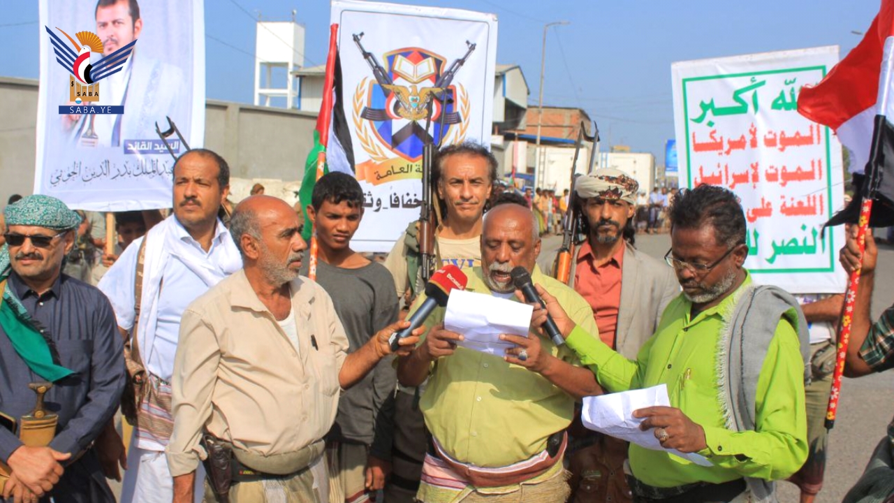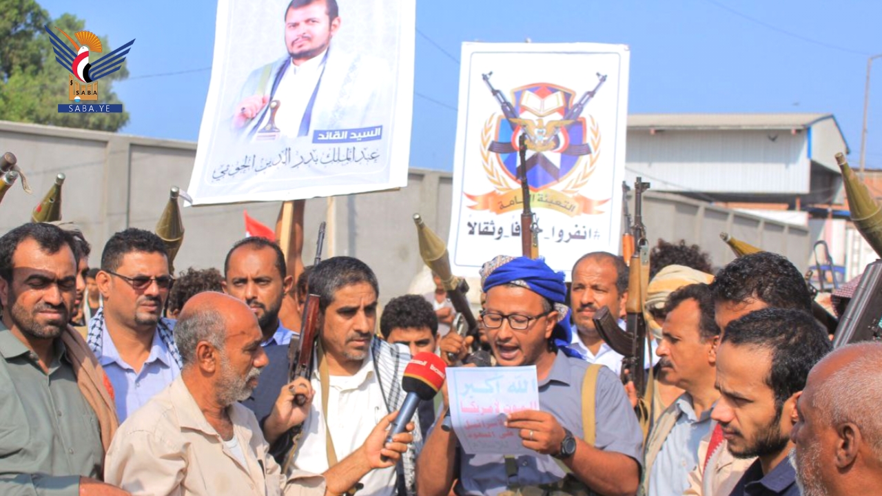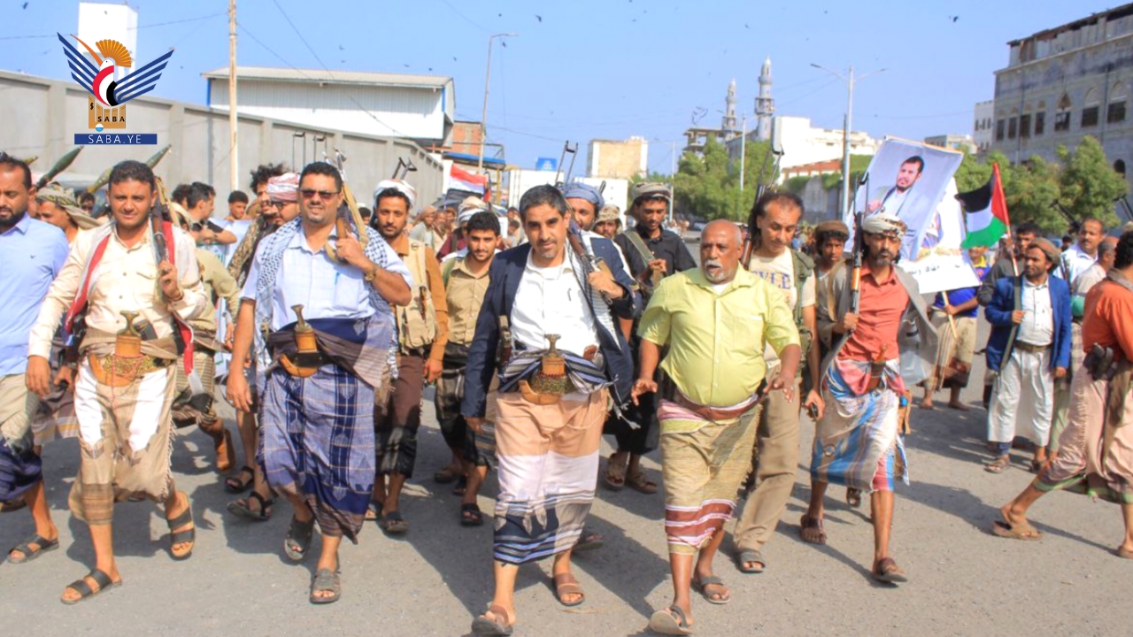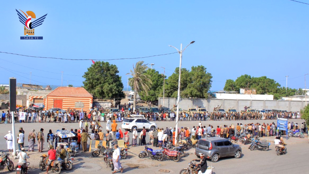 أعلن أبناء مديرية الحوك في محافظة الحديدة اليوم، النفير العام والجهوزية لتنفيذ كل الخيارات لنصرة فلسطين ودعم المجاهدين في غزة.