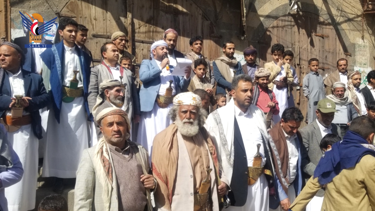 وجددّ أبناء أمانة العاصمة، تفويضهم لقائد الثورة السيد عبدالملك بدر الدين الحوثي، والتأكيد على ثبات الموقف في نصرة المستضعفين وقضايا الأمة وفي مقدمتها القضية الفلسطينية.