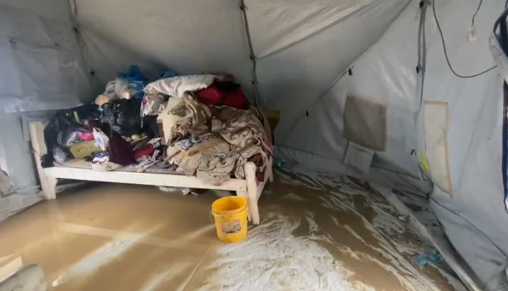 وأردفت: “الميه دخلت علينا من باب الخيمة ومن تحتها ومن فوقها. عندي الحمام طفح وامتلأ، وطفح علينا الوسخ من كثافة الميه. أنا مش عارفة وين أقعد، لي من الساعة خمسة الصباح صاحية وأنا واقفة على رجليّ مش عارفة أنا وبناتي فين أقعد".
