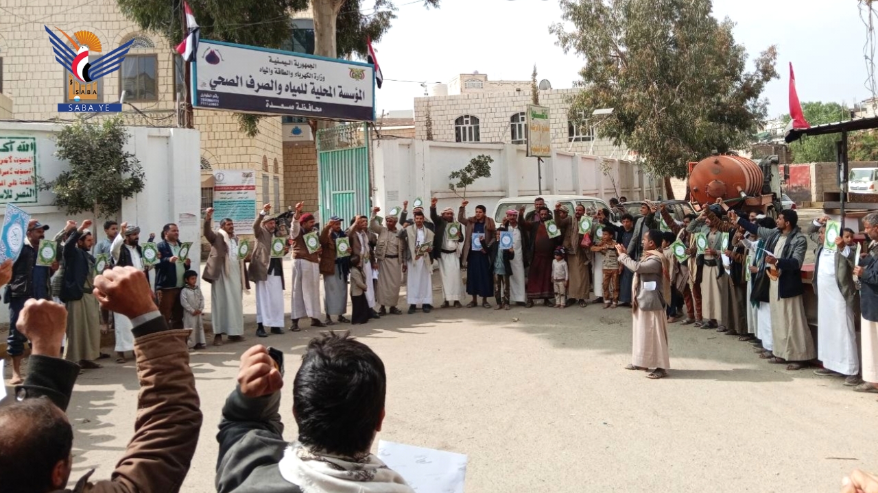 نظّمت المؤسسة المحلية للمياه والصرف الصحي بمحافظة صعدة اليوم، وقفة احتجاجية تنديدًا بالإساءة الأمريكية للمصحف الشريف.