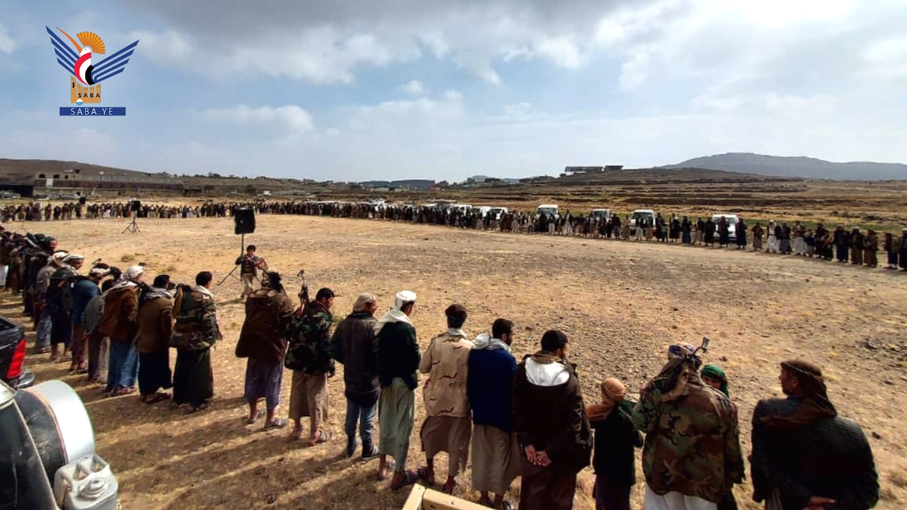 نظمت التعبئة العامة في مربع بيت نعم بمديرية همدان في محافظة صنعاء، وقفة قبلية إعلانًا للجهوزية والاستعداد لأي جولة قادمة، وتنديدًا بجريمة الإساءة للقرآن الكريم.