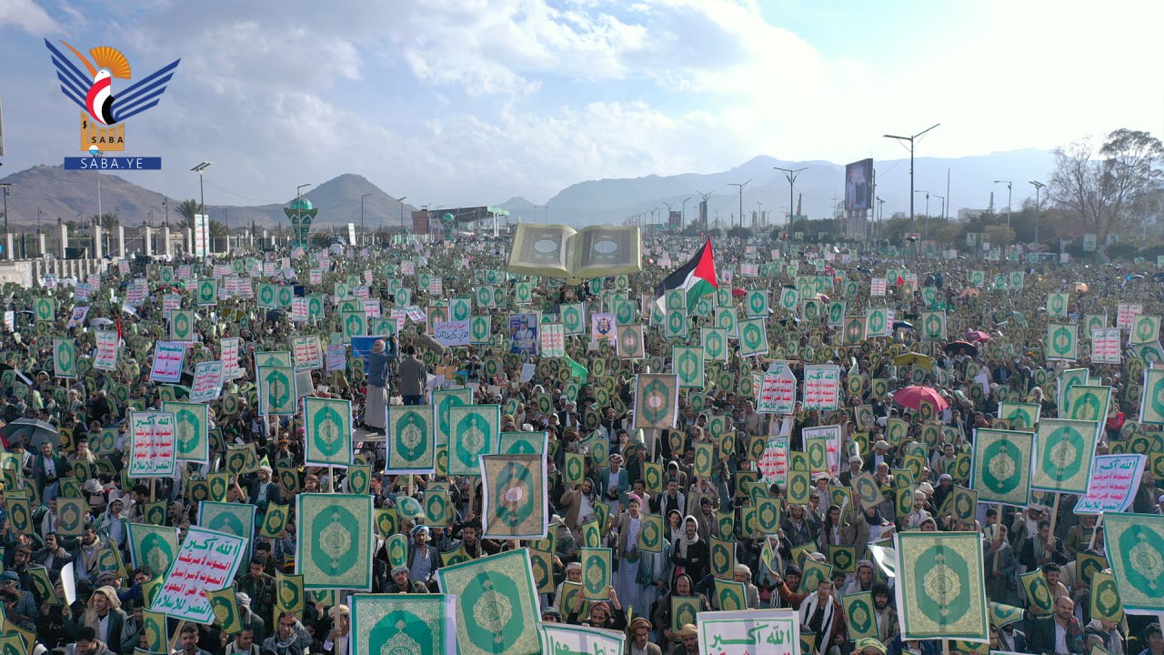 ورفعت الحشود المليونية في المسيرة، المصحف الشريف تعظيما وتقديسا وإجلالا وإكبارا لكتاب الله الخالد ومنهجه القويم، مؤكدة تمسكها به، كونه مصدر عزة وكرامة الأمة وطريق هدايتها ونجاحها في الدنيا والآخرة.