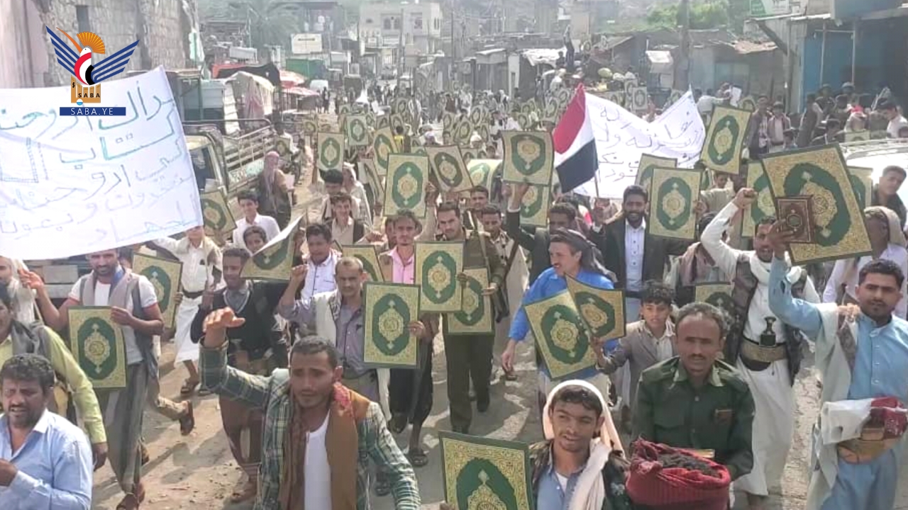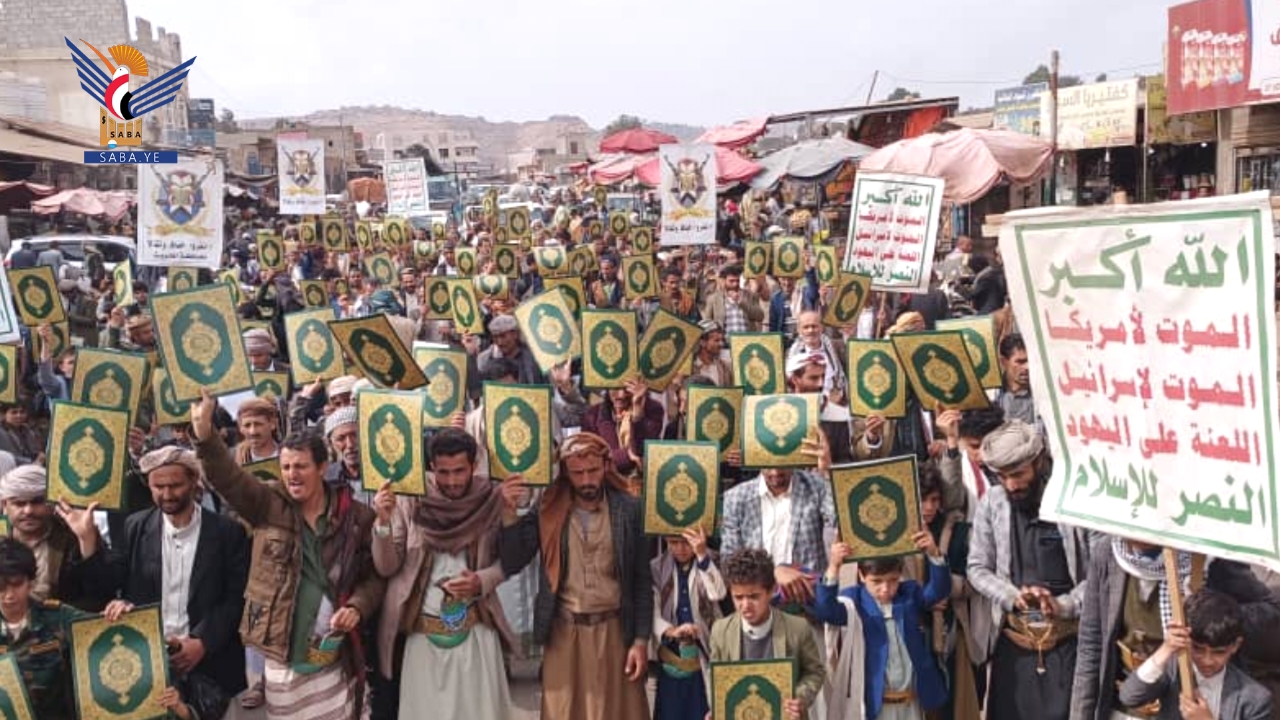 وأكد بيان صادر عن مسيرات المحافظة أن ما يتعرض له القرآن الكريم، وهو أقدس مقدسات الإسلام، من حملات إساءة متكررة وممنهجة، يأتي في إطار حرب يهودية صهيونية شاملة تستهدف الإسلام والمسلمين ومقدساتهم، تقودها أمريكا وإسرائيل وبريطانيا، ويتبعهم أولياء الشيطان الرجيم، في وقت يواصل فيه العدو الصهيوني جرائمه اليومية في فلسطين، واعتداءاته على لبنان، واستباحته للأراضي السورية، وتهديداته لليمن، ومؤامراته على المنطقة بأسرها، بدعم أمريكي وبريطاني مباشر، وفي ظل تخاذل عربي وصمت وتواطؤ دولي مخزٍ.