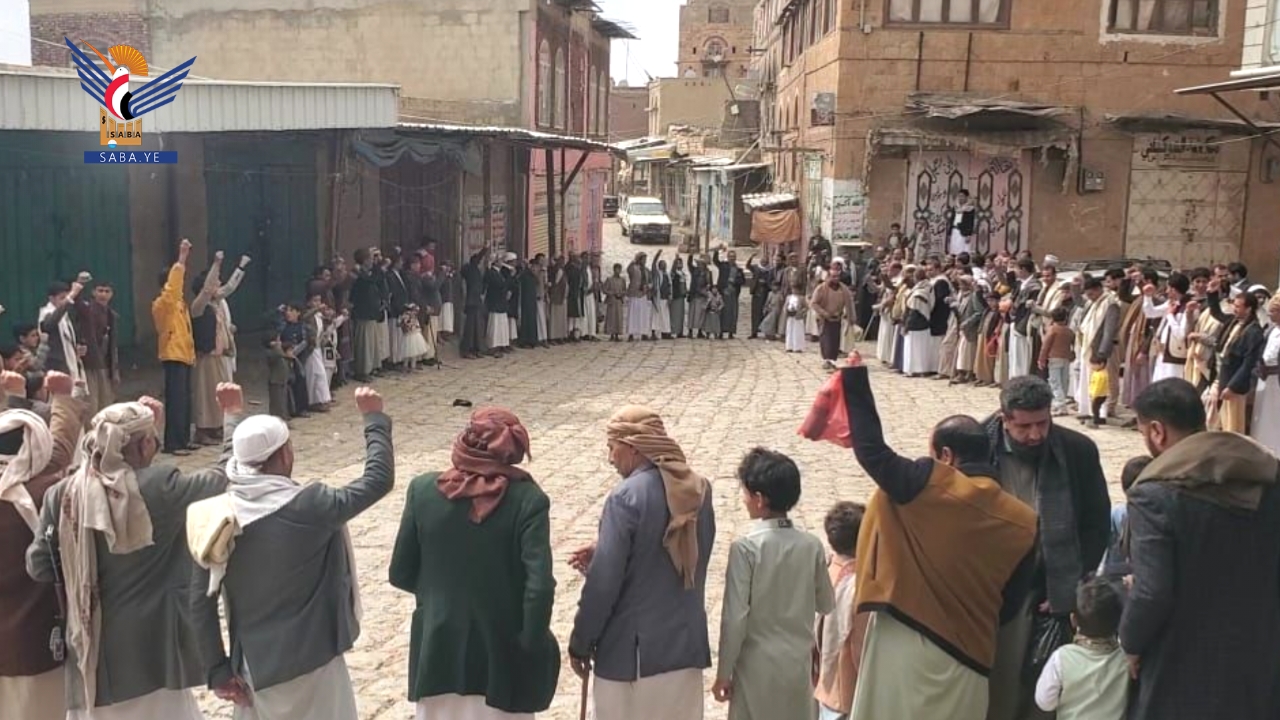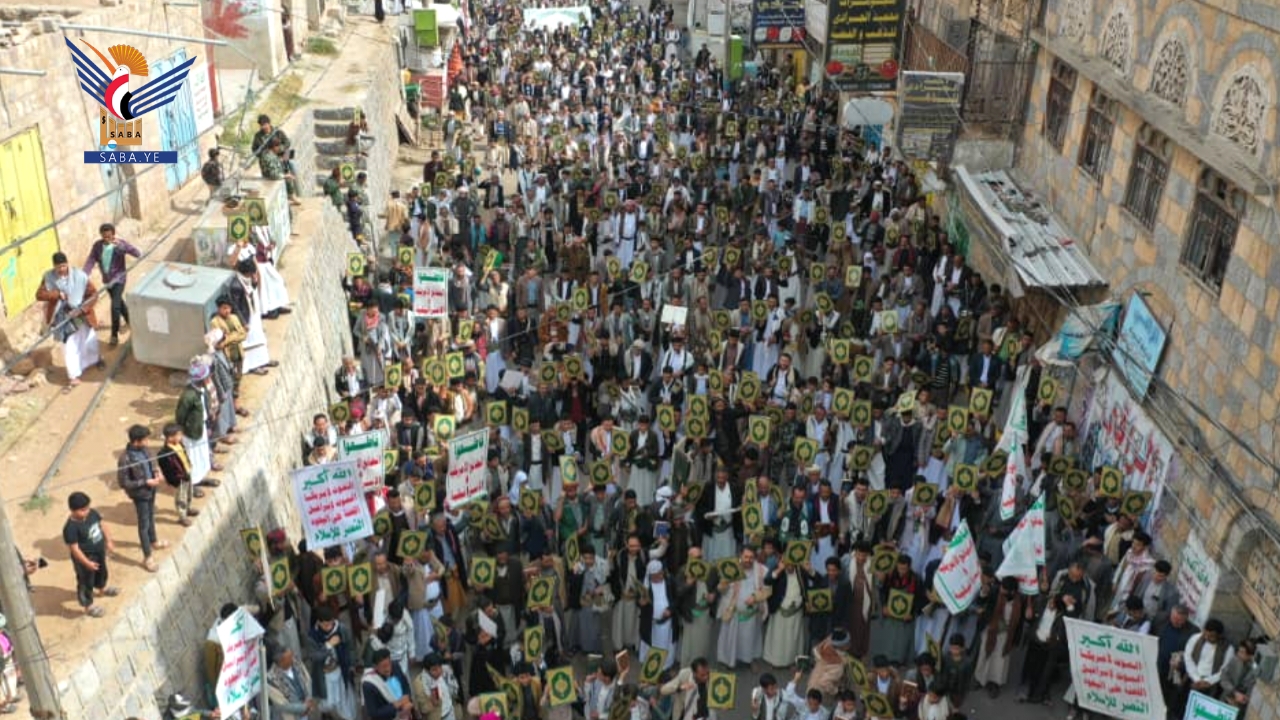 وأكدت الحشود الجهوزية والاستعداد العالي، والنفير العام في مواجهة أعداء الأمة والوطن، مجددة العهد باستمرار الصمود ورفض كل أشكال العدوان والمؤامرات التي تستهدف أمن واستقرار البلاد.