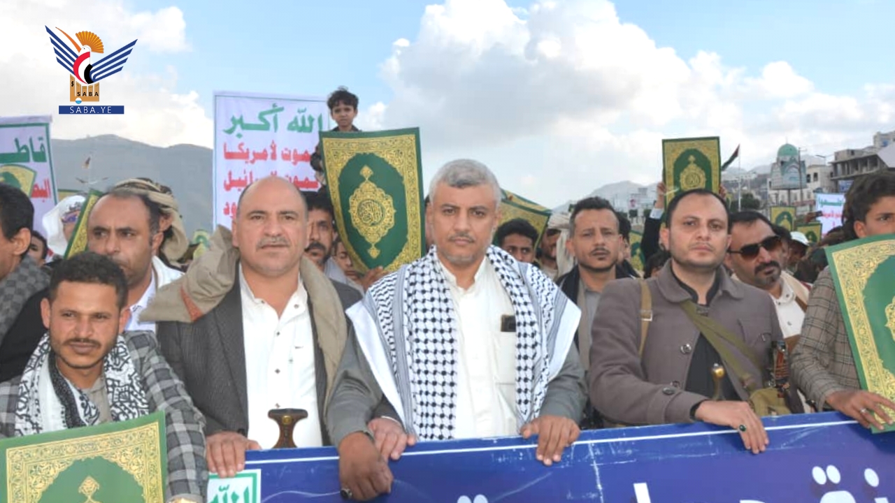 وعبّر المشاركون في المسيرات التي تقدمها قيادات السلطة المحلية والتعبئة العامة، وعدد من أعضاء مجلسي النواب والشورى، ووكلاء المحافظة عن موقفهم المبدئي والثابت في نصرة كتاب الله والدفاع عن القضية الفلسطينية، ورفضهم القاطع لكل أشكال الإساءة والعدوان.