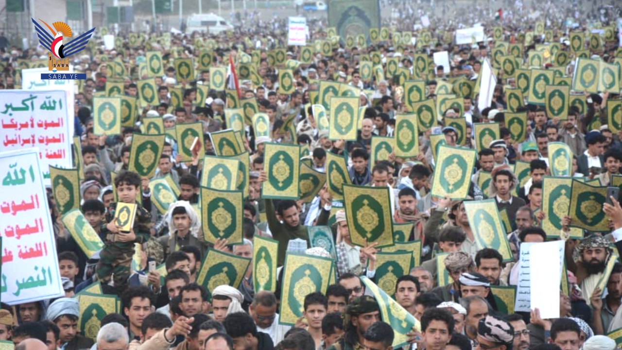 وأكدوا أن خروجهم الجماهيري الواسع يأتي استجابةً لنداء الواجب الديني والأخلاقي، وتجسيدًا لحالة النفير والاستنفار الشعبي دفاعًا عن القرآن الكريم، ونصرةً للشعب الفلسطيني الذي يتعرض لعدوان متواصل وحصار ظالم.