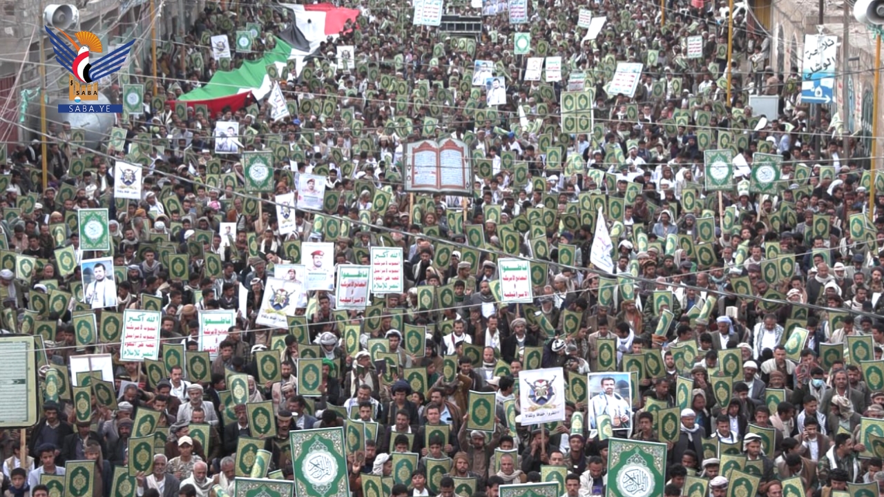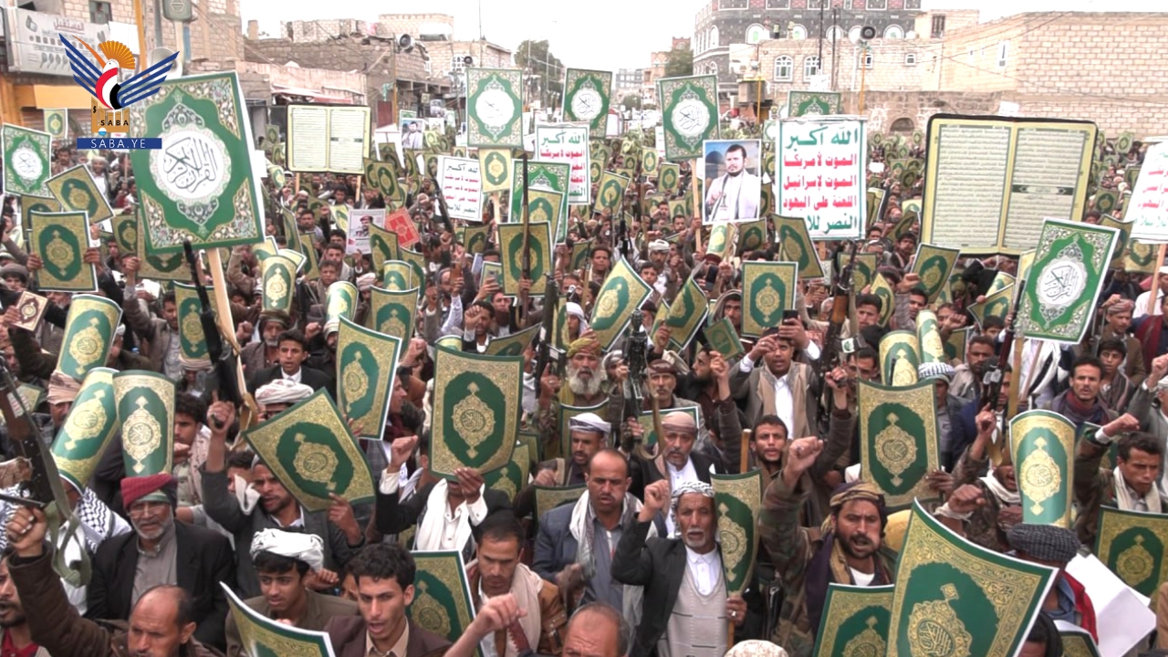 وأضاف "ومن منطلق هذا الإيمان وهذه الحكمة خرجنا لنسمع كل العالم صوتنا الرافض والغاضب لكل الإساءات الأمريكية والصهيونية المتكررة للقرآن الكريم وللمقدسات، ولنؤكد على ثبات موقفنا الإيماني في مساندة الشعب الفلسطيني المسلم المظلوم، وكذا جهوزيتنا العالية واستنفارنا واستعدادنا للجولة القادمة من الصراع مع الأعداء، ومواجهة كل مخططاتهم ومؤامراتهم التي تستهدف ديننا وأمتنا وبلدنا وشعبنا وكل المنطقة".