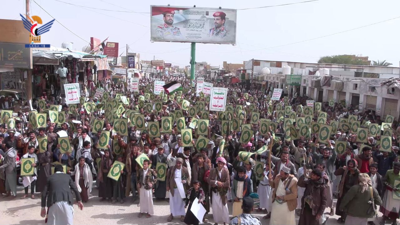 أما مديرية الخلق فقد شهدت مسيرات شعبية واسعة، أكدت في بيانها أن الأمة التي تهجر القرآن تُستباح مقدساتها، وأن العودة الصادقة لكتاب الله هي السبيل للنصر والعزة.