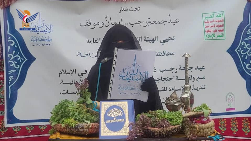 ولفتت إلى أن إحياء أبناء الشعب اليمني لذكرى جمعة رجب يؤكد السير على نهج الرسول الأعظم الكريم، ويعزّز الهوية الإيمانية، ويجسّد الارتباط بدين الله، ومواقف الأجداد الذين ناصروا الإسلام بأموالهم وأنفسهم.