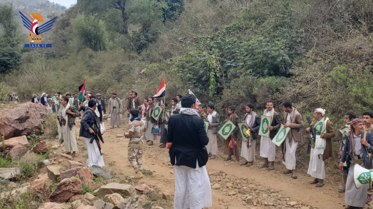 نظمت التعبئة في بني العوام بمحافظة حجة، اليوم، مسيرا وتطبيقا قتاليا ومناورة لخريجي دورات طوفان الأقصى في عزلة ردمان.